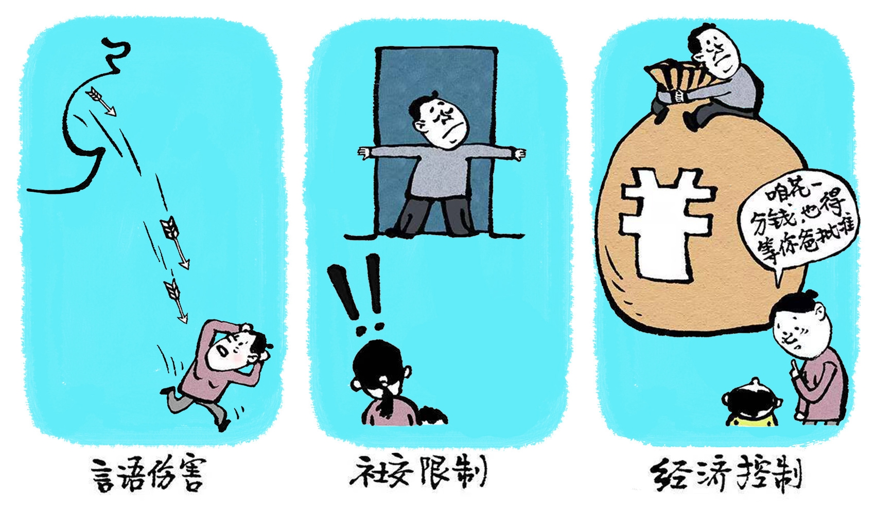 经济控制严重摧毁着婚姻的正常根基,冲击着弱势一方的生存独立性、自尊自信和自我价值认同,具有极强的伤害性和侮辱性。说穿了,经济控制是践踏弱势方的生存权利。