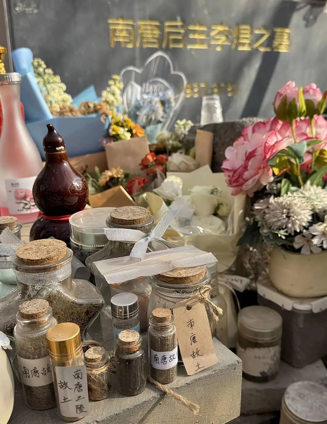 不止三国人物,其他历史名人的墓前,也藏着年轻人的巧思与温情:拜袁术的人,会送上一杯蜂蜜水,弥补他临终前求蜜而不得的凄惨;拜李煜的人,会带去标注着“南唐水”“南唐故土”的南京水土,抚慰他“故国不堪回首月明中”的深沉乡愁;拜苏轼的人,总不忘带上东坡肉、荔枝等美食,给这位“吃货”文豪解解馋;就连大明首辅张居正,也收到了网友送来的痔疮膏——据记载,张居正晚年深受痔疮困扰,甚至因手术元气大伤,这份“贴心”,藏着对这位改革家的心疼。