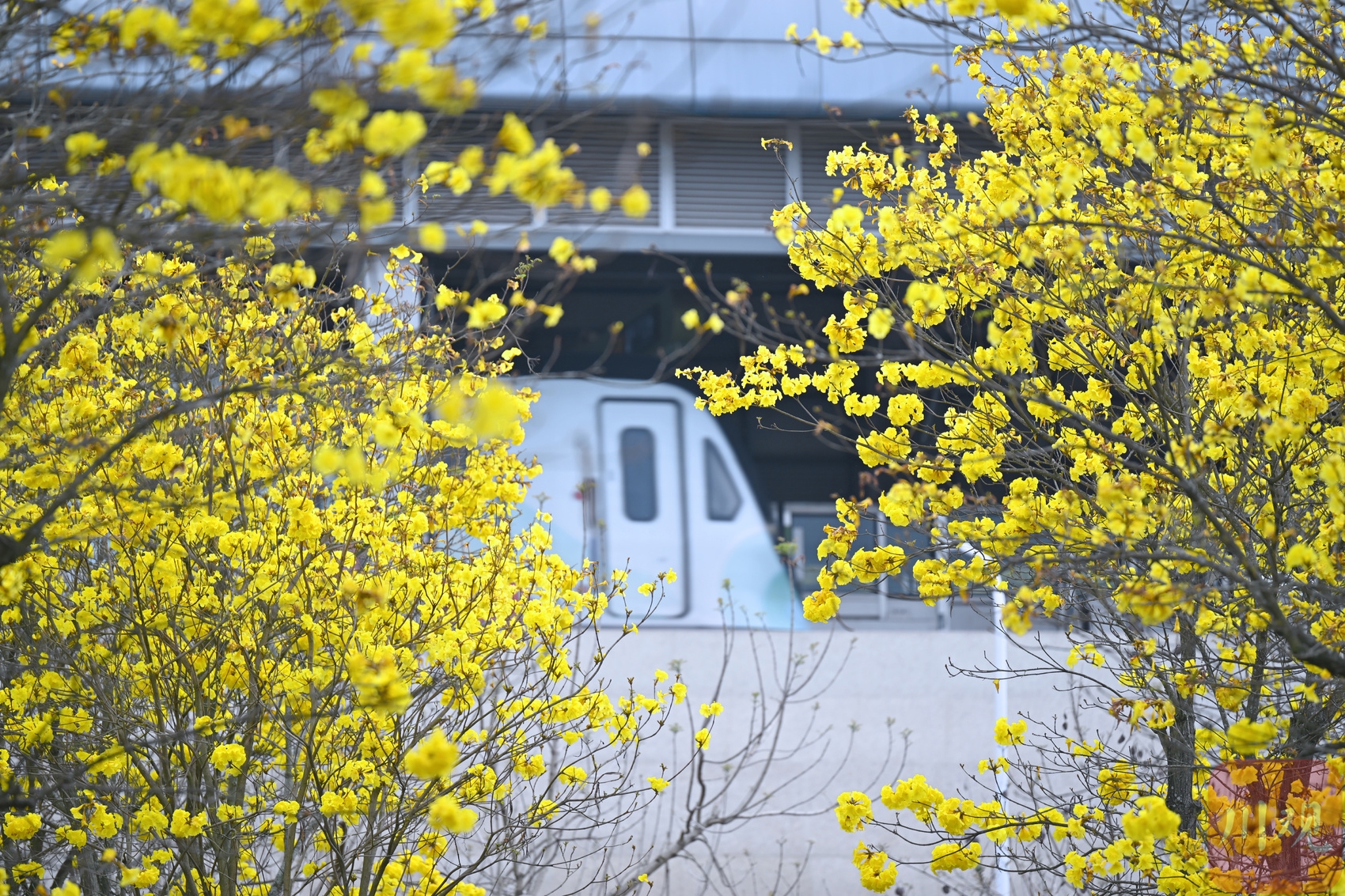 金星地铁站外盛开的黄花风铃木