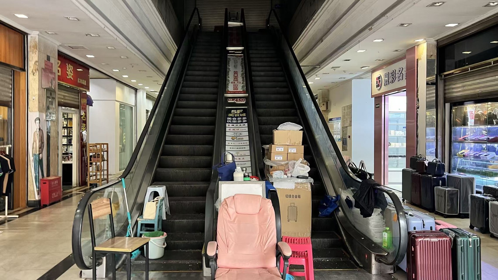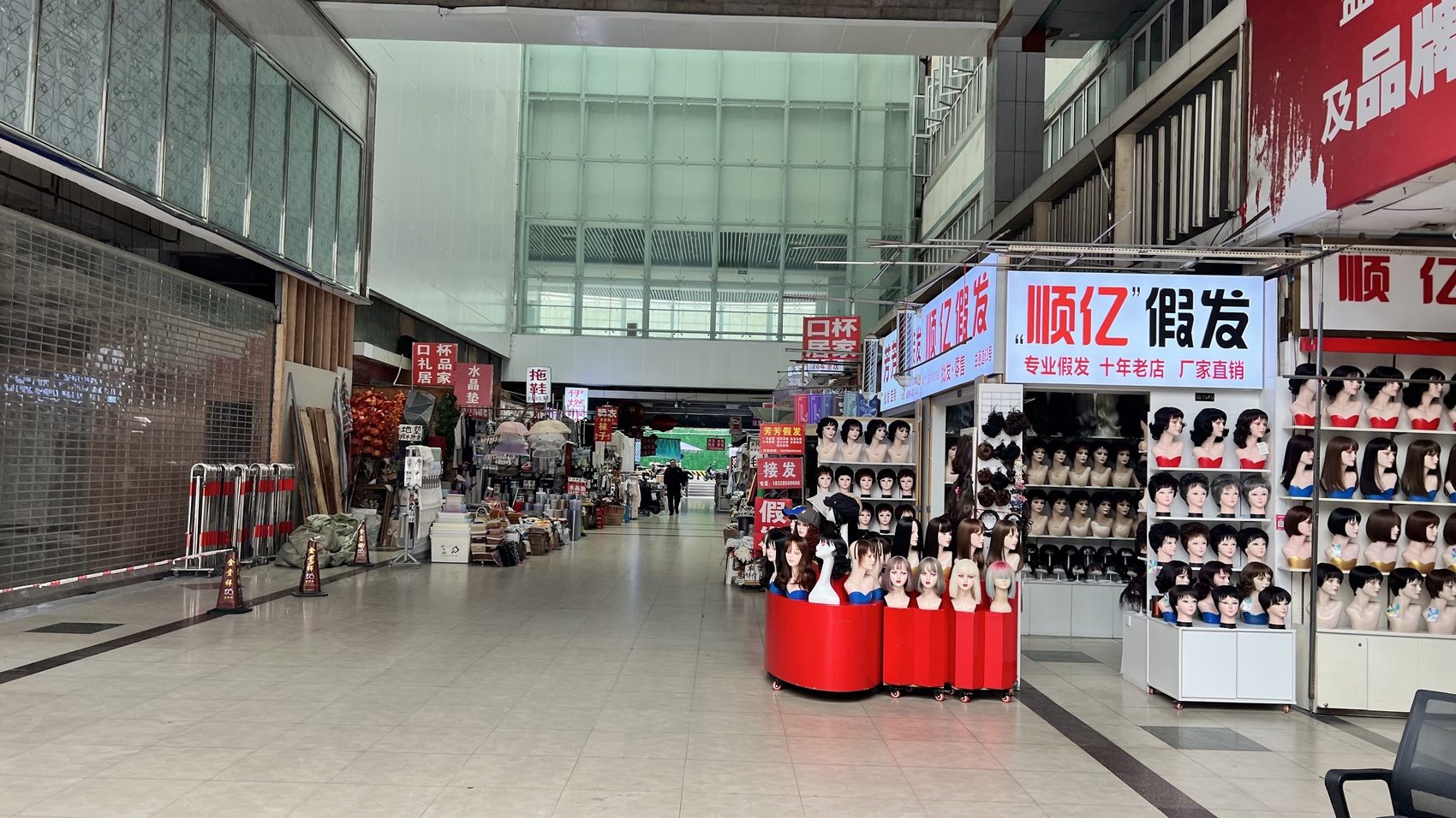 4月8日下午2点,记者来到盐市口广场看见,一层依旧有不少商铺还在经营假发、酒店用品等小商品,但一层通往负一层、A区和B区二层的三个通道,均被堆放杂物,无法进入。