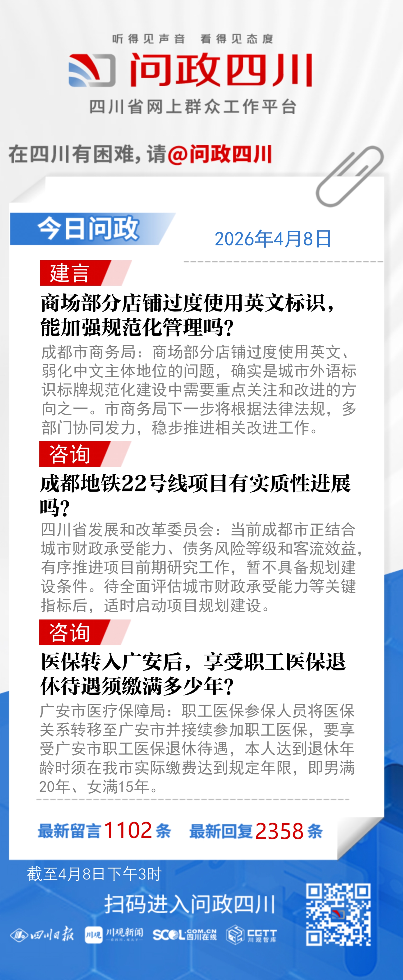 再次由衷感谢您的监督与建言,期待您继续关注成都发展,共同把成都建设得更规范、更有中国气质、更有文化温度。