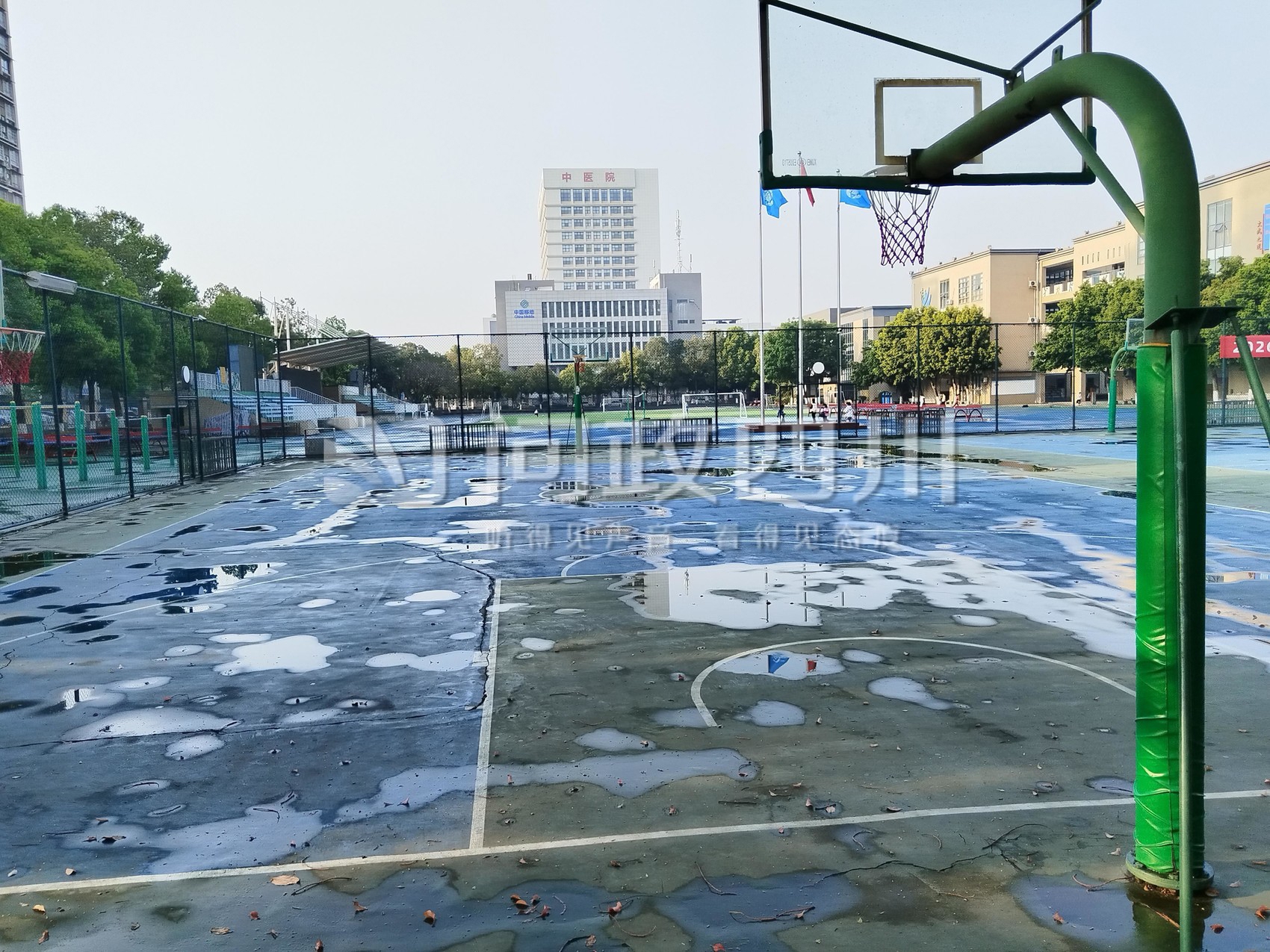问政四川网友提问:德阳市庐山路小学的塑胶跑道氧化并严重脱色,篮球场也是坑坑洼洼的,下雨就积水严重。想请问什么时候能进行维修?