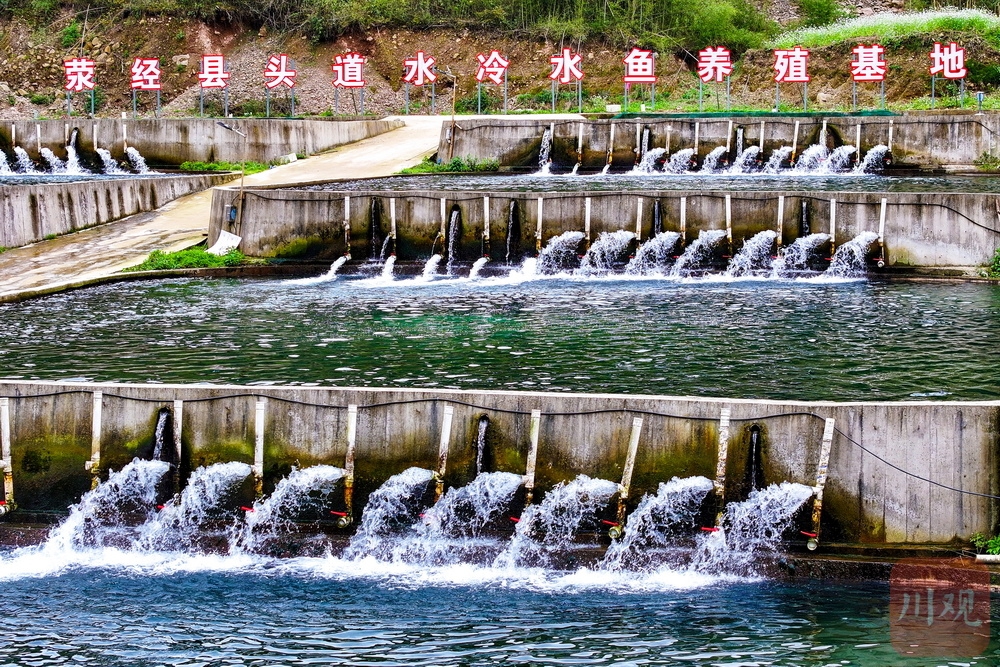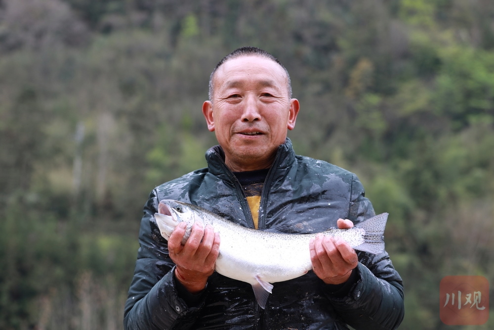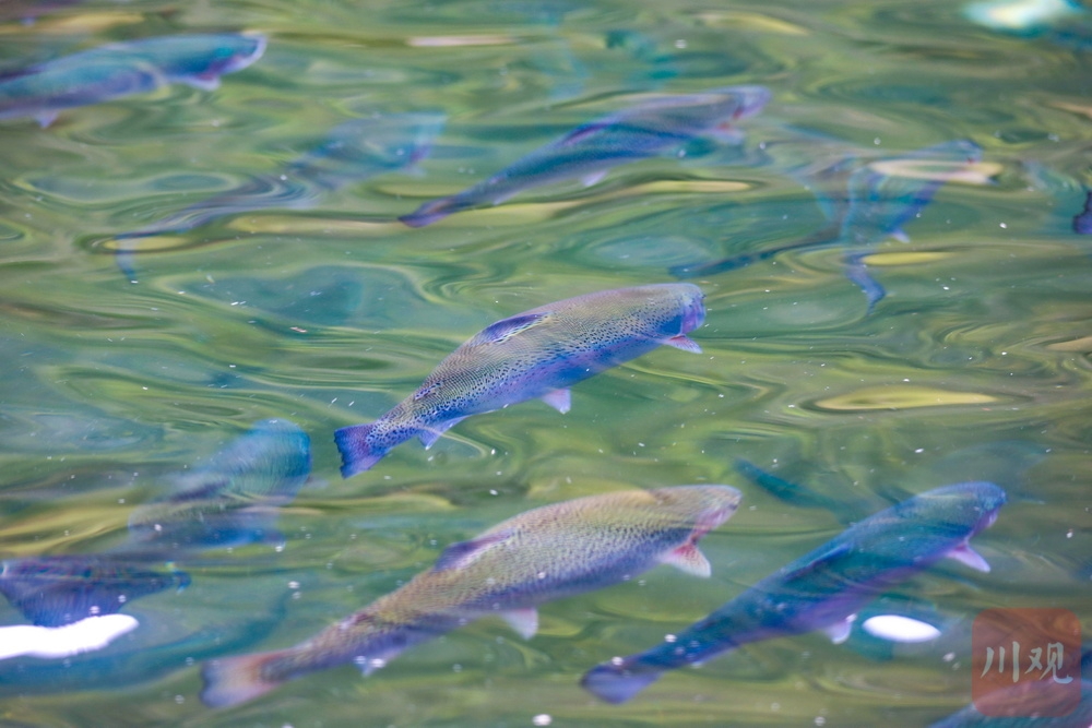 养好虹鳟,水则是关键。这座基地依“头道水”而建,河水清澈冰凉,上游不远处接壤大熊猫国家公园,被层层青山环抱。这里每年可产200万尾虹鳟,预计年产值约6000万元。