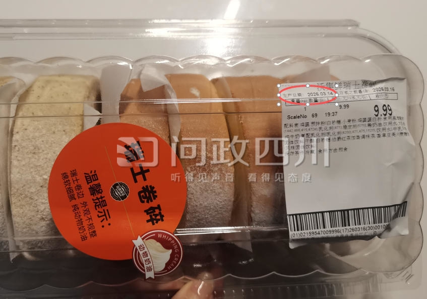 3月中旬,消费者周女士在自贡一家沃尔玛购买了一盒“瑞士卷碎”,根据瑞士卷碎包装显示,生产日期为当天。周女士付款后便拿出品尝,却发现瑞士卷碎中还有“冰坨坨”,“这一看就不是当天生产的,像是冷冻产品呢?”