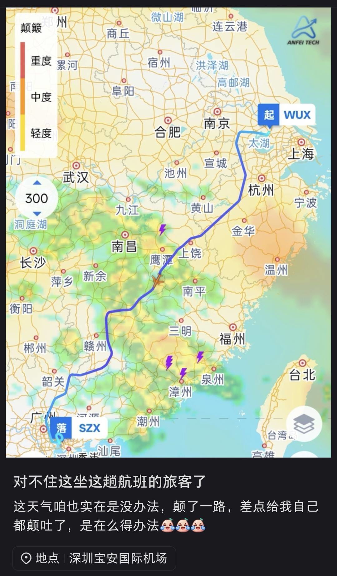 “对不住坐这趟航班的旅客了,这天气咱也实在没有办法,颠了一路,差点给我自己颠吐了,实在没办法了。”4月6日,某航司副驾驶凌云(化名)在社交平台上写道。