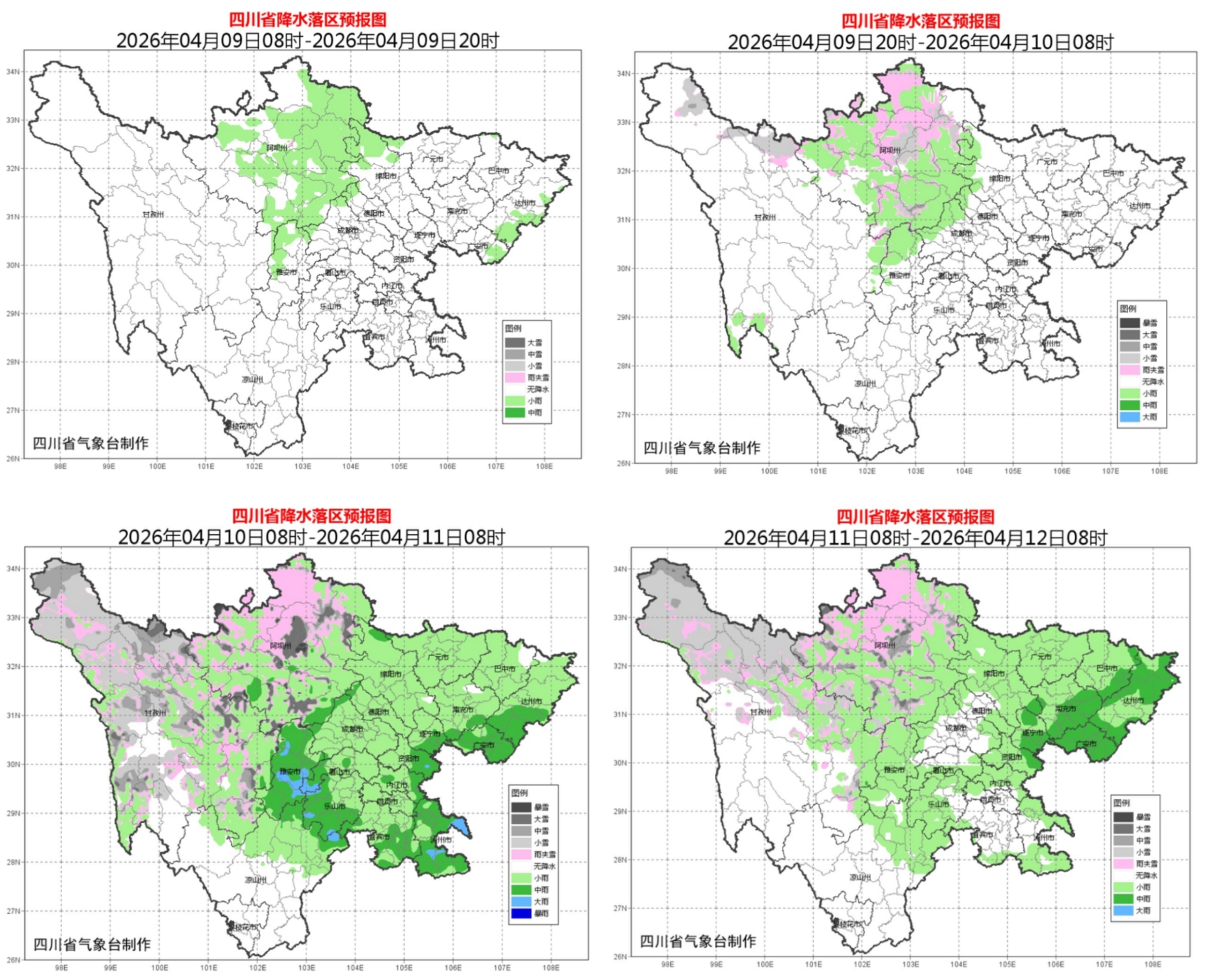 相比盆地,川西高原最近三天的降水就比较多了。四川省气象台预计,9日阿坝州大部,10日至11日阿坝州、甘孜州大部和凉山州东北部有分散阵雨(雪)或雷雨,局部中雨(雪)。攀西地区大部则保持稳定的晴暖天气。
