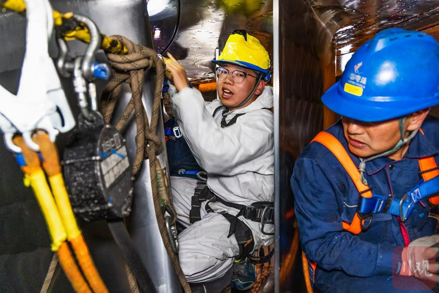 甘孜州雅江县两河口水电站发电机内部检修。
