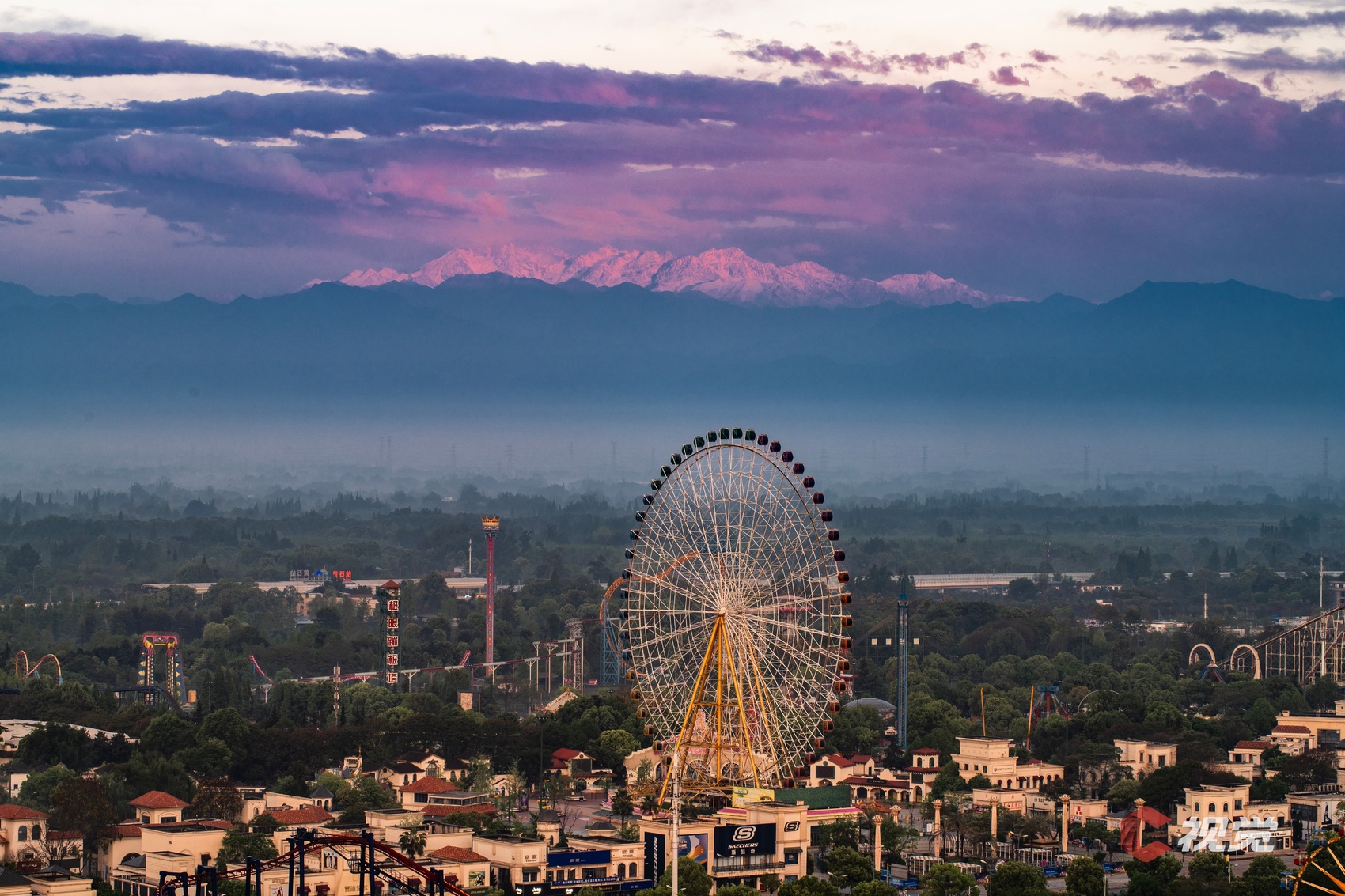 4月9日清晨时分,澄澈天光下,西岭雪山大雪塘等连绵雪峰清晰矗立,延续着 “窗含西岭千秋雪” 的诗意画面;午后气温一路攀升至29℃,空气里满是初夏的温热,许多市民都换上了夏装,感受 “一秒入夏” 。一边是川西高原的清冷雪峰,一边是盆地腹地的暖热春光,这种罕见的 “冷暖同框”,正是春日“雪山下公园城市”独有的魅力。