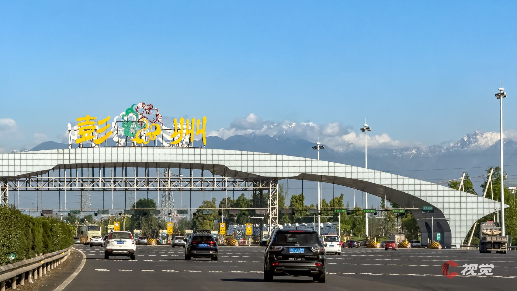 4月9日,成都彭州收费站与西边雪峰同框。C视觉签约摄影师 张梦