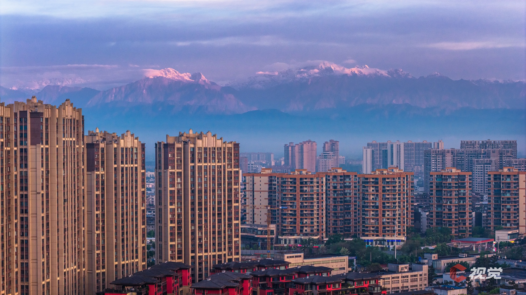 4月9日,地处成都平原边缘的德阳什邡城区,城市建筑与远处雪山同框入画。C视觉签约摄影师 邹声福