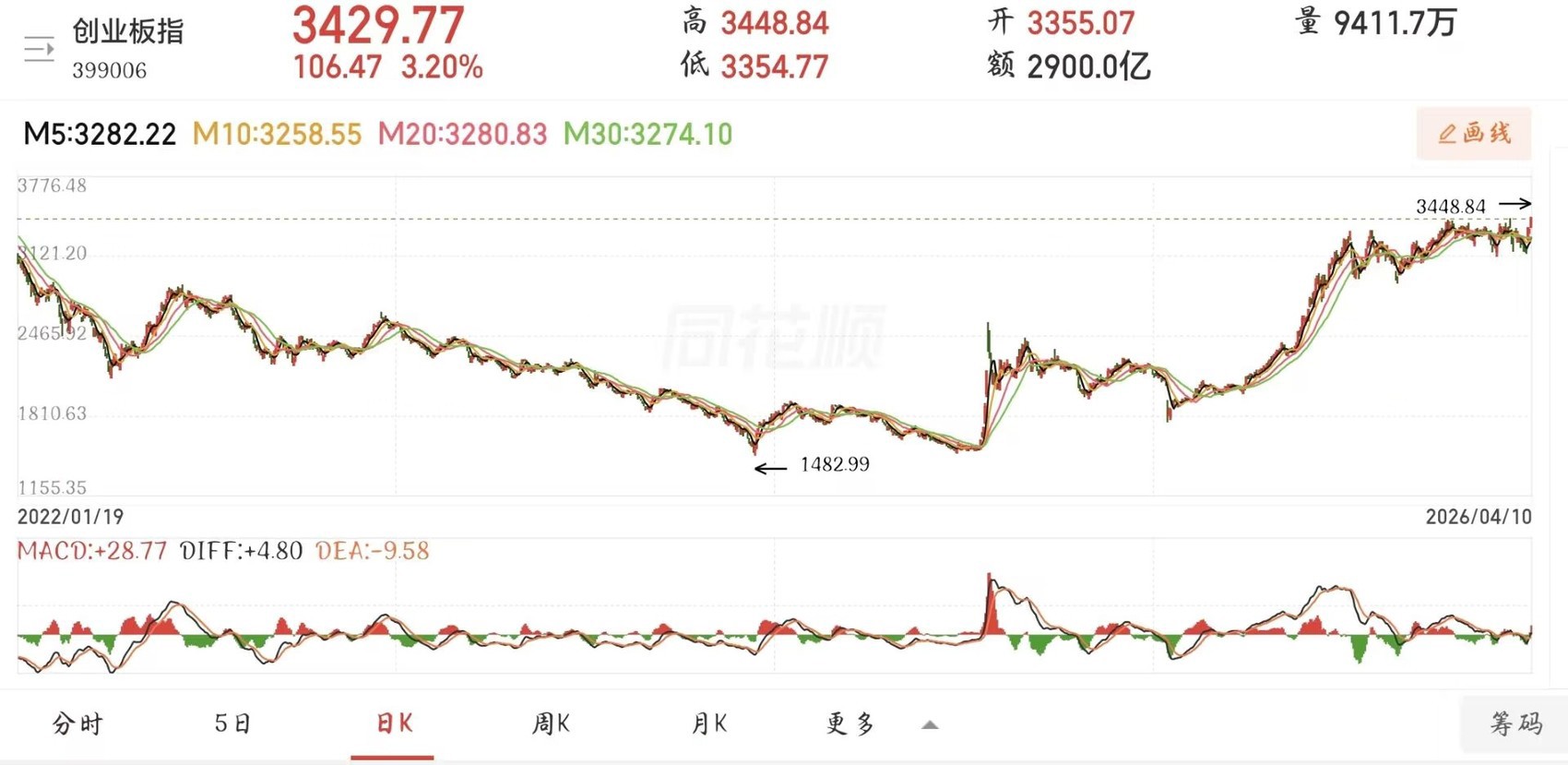 4月10日早盘,A股市场迎来强势大涨行情,上证指数时隔14个交易日,重返4000点重要关口,三大指数集体冲高,创业板指创下2021年12月以来的新高。