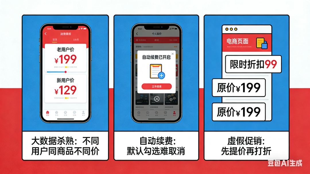 如果说“杀熟”是明面上的价格歧视,那么“自动续费”陷阱则更为隐蔽。默认勾选、隐藏取消入口、不显著提醒、强制扣费……这些行为长期困扰消费者,新规同样予以严管。