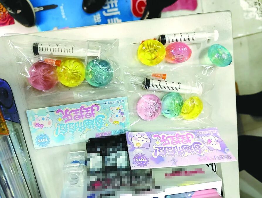 “学校和市场监管局已经来过了,我们不卖了。”4月8日下午,在张澜学校虹溪路校区门口一小卖部老板告诉记者,此前,他们确实售卖过带有针头的“捏捏乐”产品,单个售价为2元。但不久前在收到相关部门提醒后,他们全面停售该商品,取而代之的是无针头的“捏捏乐”产品。