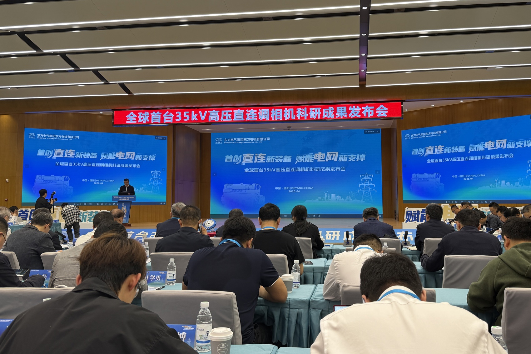 4月10日,东方电气集团东方电机有限公司(以下简称“东方电机”)自主研发的35千伏高压直连调相机顺利通过整机型式试验,各项性能指标优异。这是全球首台35千伏高压直连调相机,标志着我国在高压无功补偿装备领域取得重大突破。