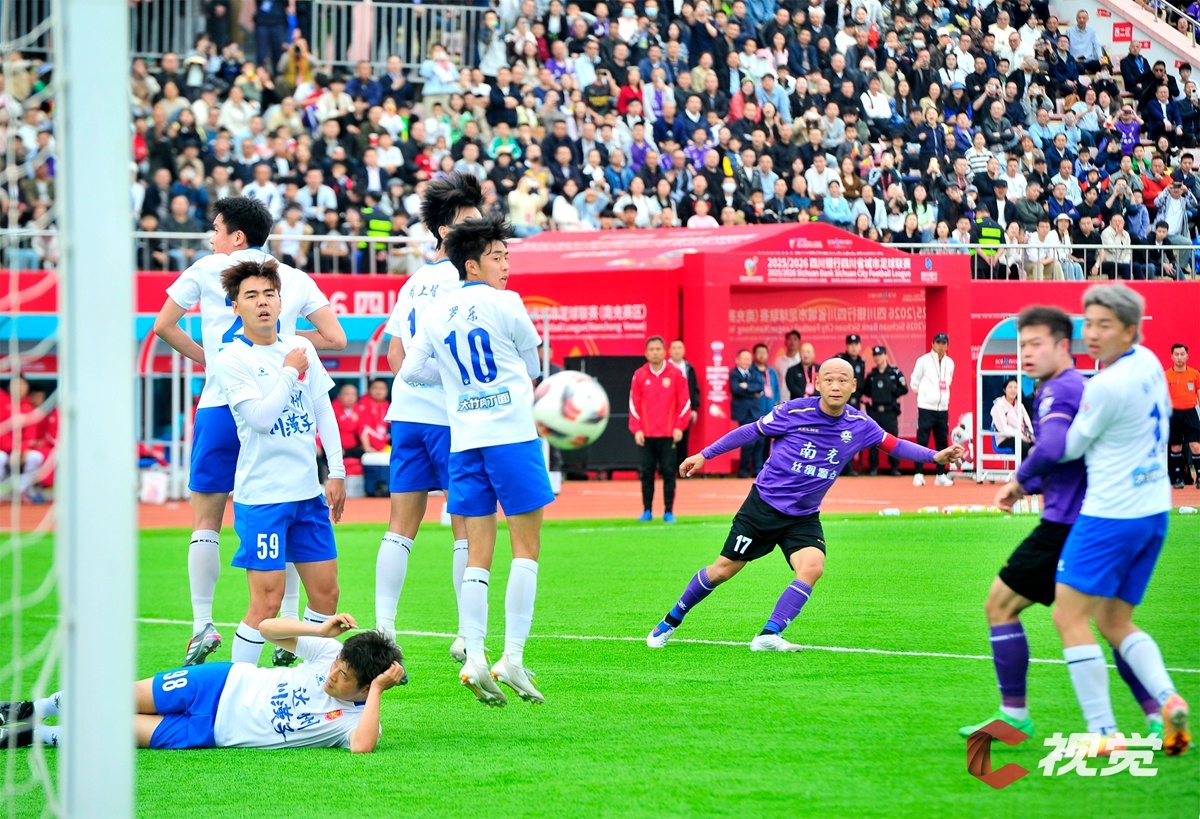 4月11日下午,“川超”决赛阶段第五轮比赛,南充丝绸源点队主场迎战达州川汉子队。最终南充队以3:1获得胜利。C视觉签约摄影师 吴斌 摄