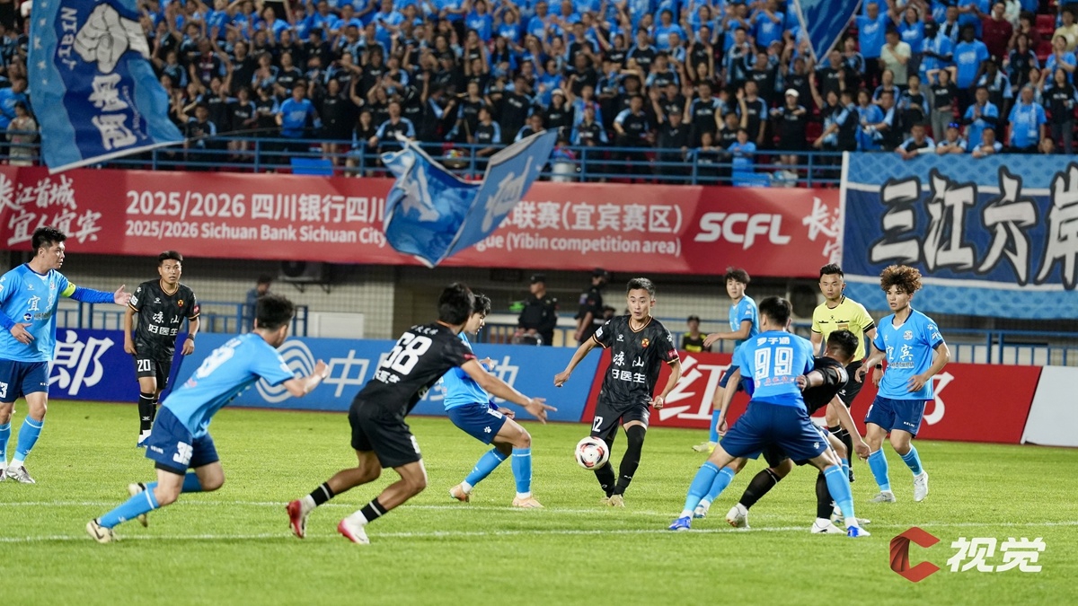 4月11日,“川超”决赛阶段第五轮比赛,宜宾长江首城队主场迎战凉山好医生队。经过激烈比拼,最终宜宾队3:2战胜凉山队。C视觉签约摄影师 张元戎 摄