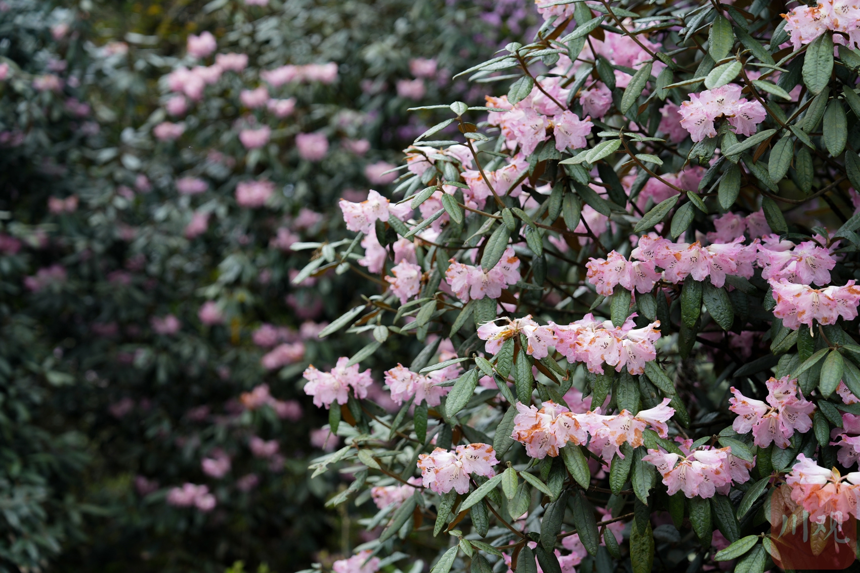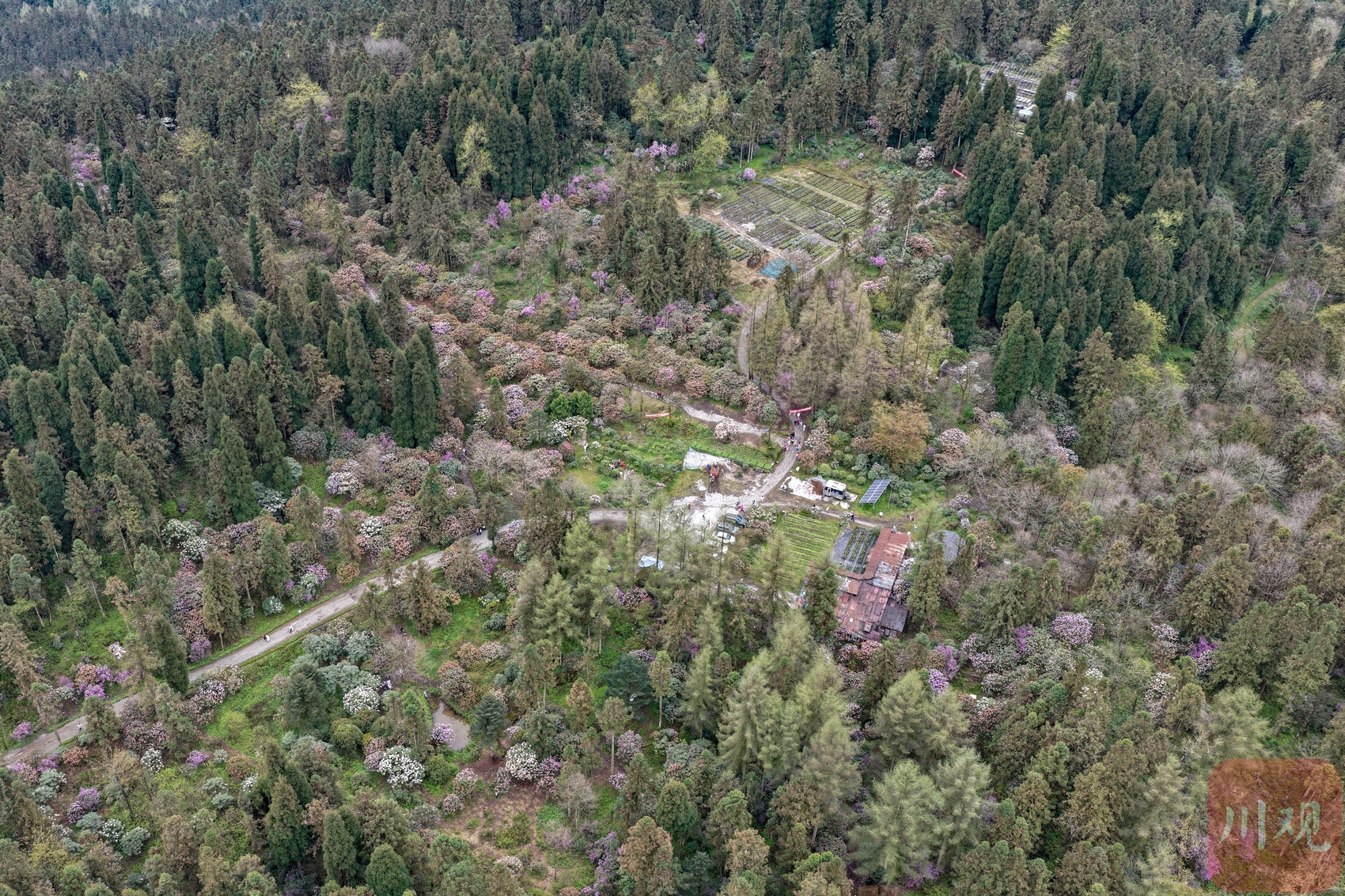 4月11日,成都都江堰龙池国家森林公园华西亚高山植物园杜鹃花盛开。