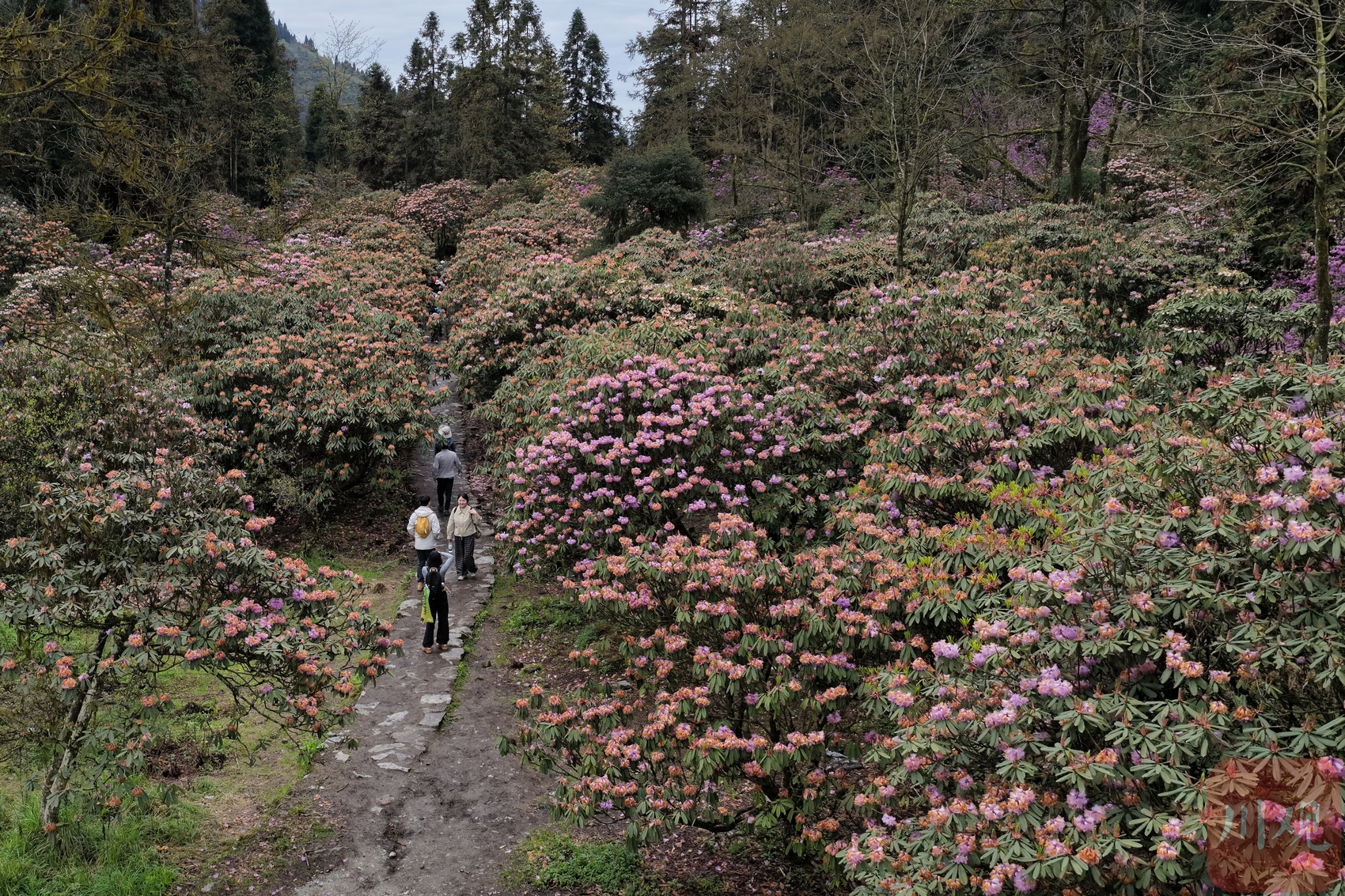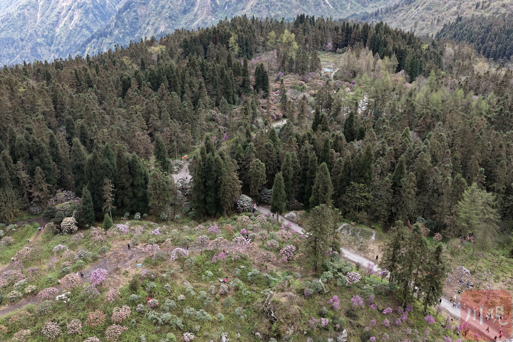 4月11日,成都都江堰龙池国家森林公园华西亚高山植物园人气满满,众多市民、游客打卡高山杜鹃花海。漫山缤纷杜鹃次第舒展,层层叠叠缀满山林,氛围感拉满。