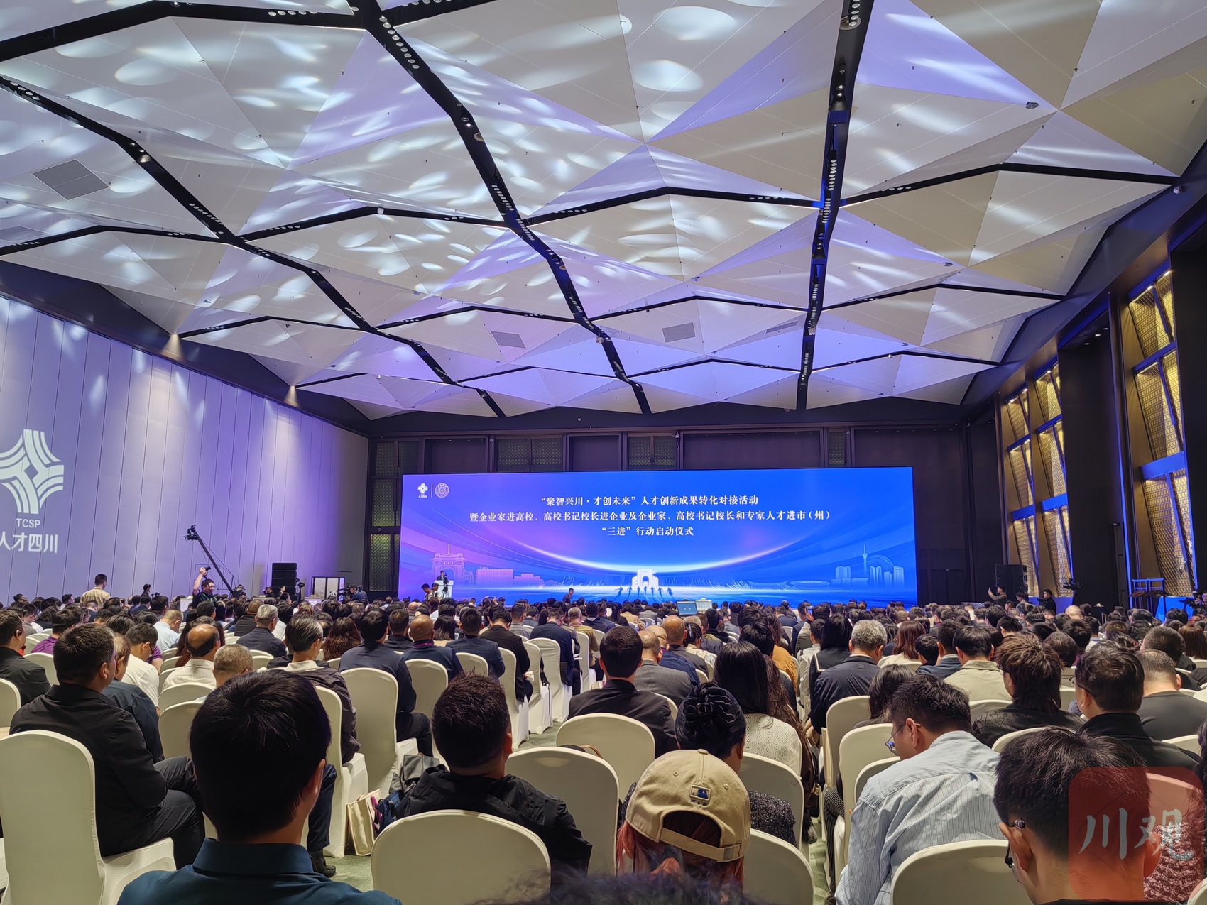 “聚智兴川·才创未来”人才创新成果转化对接活动暨企业家进高校、高校书记校长进企业及企业家、高校书记校长和专家人才进市(州)“三进”行动启动仪式现场。