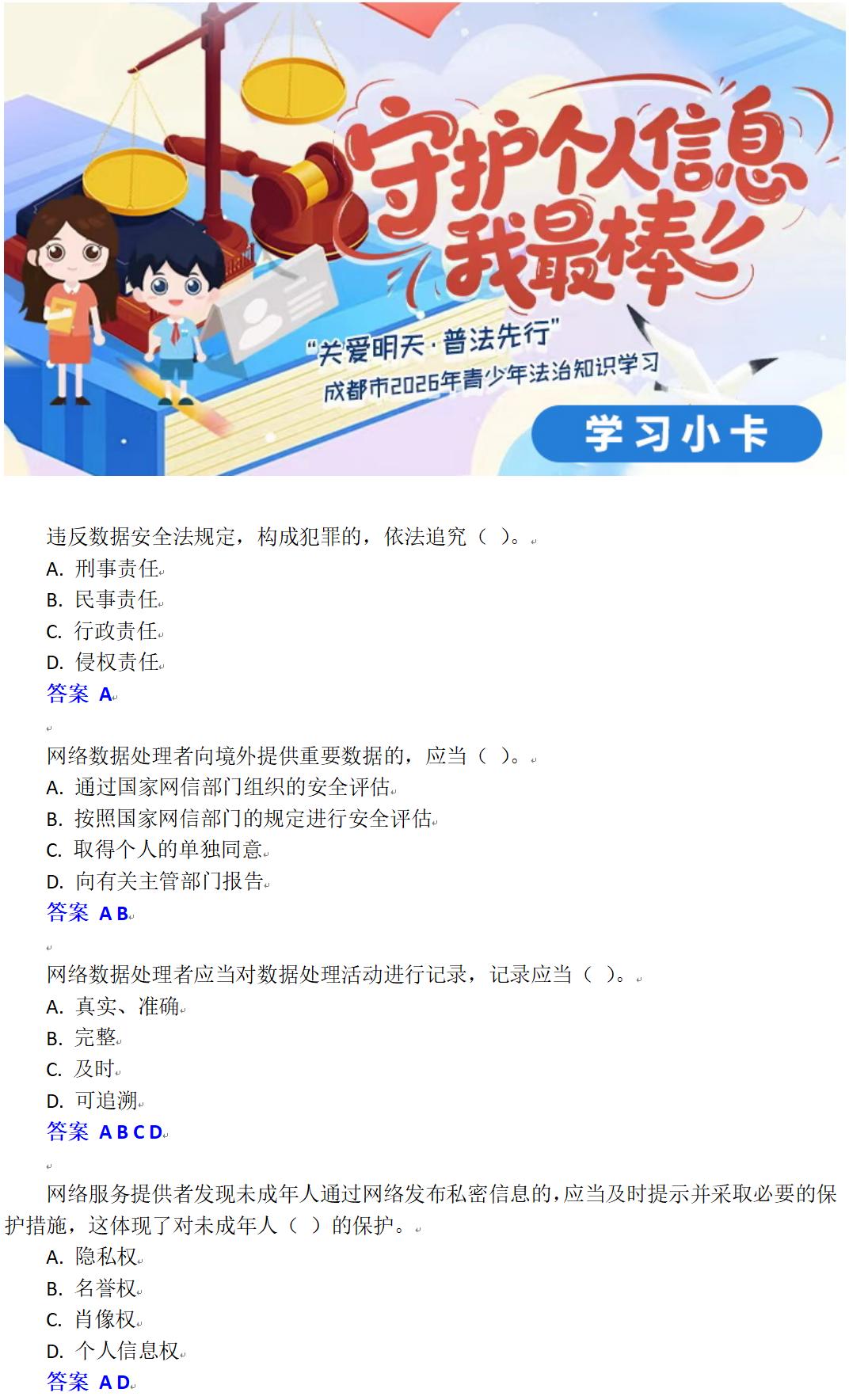 “关爱明天·普法先行”成都市2026年青少年法治知识学习火热进行中!
