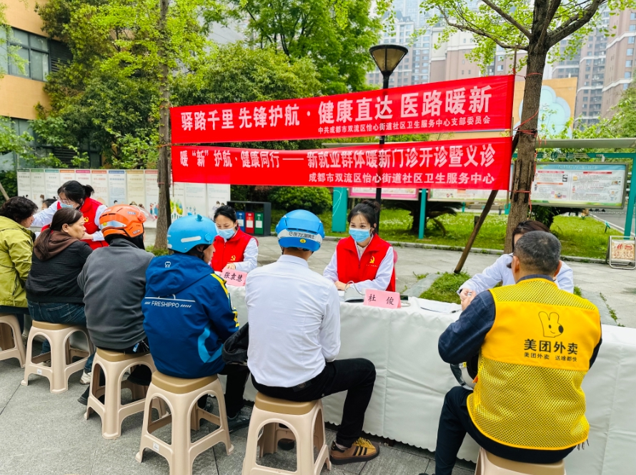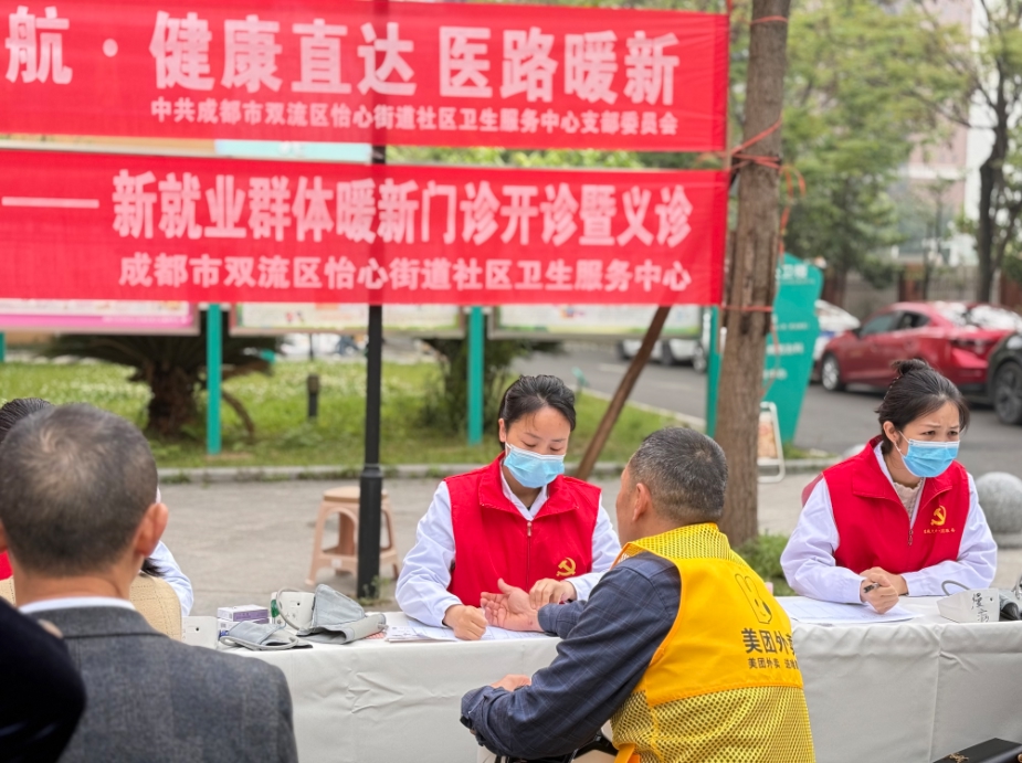 4月3日上午,成都市双流区怡心街道社区卫生服务中心一楼大厅外,二十余位身着外卖工装、快递工服的小哥正有序排队,有的撸起袖子量血压,有的对着医生指出腰背疼痛的位置。同一天,这里正式启动“暖新门诊”试点服务,举办了一场面向外卖员、快递员、网约车司机等新就业群体的免费义诊活动。平日里忙着在城市街头奔跑的他们,难得停下来,认认真真关心了一回自己的身体。