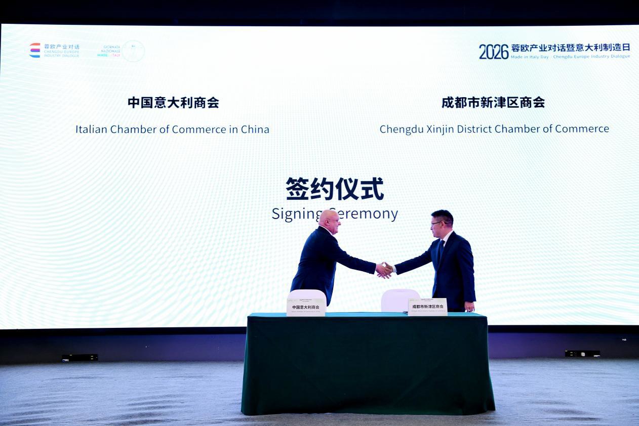 签约备忘录、对接产业链、共话新机遇……4月13日,蓉欧产业对话暨2026意大利制造日活动在成都天府农博园举办,成都市新津区商会与中国意大利商会现场签约,双方将在农业食品行业信息共享、产业对接、企业服务等方面建立常态化经贸合作机制。