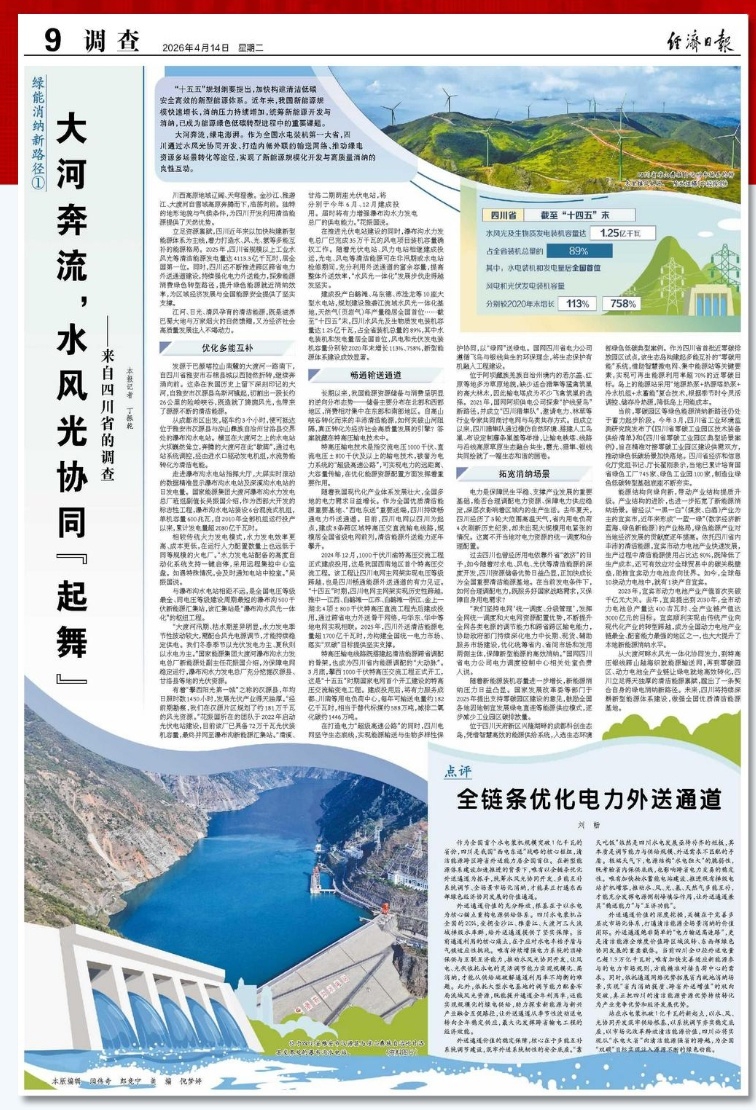作为全国首个水电装机规模突破1亿千瓦的省份,四川是我国“西电东送”战略的核心枢纽,清洁能源跨区跨省外送能力居全国首位。在新型能源体系建设加速推进的背景下,唯有以全链条优化外送通道为抓手,统筹水风光协同开发、多能互补系统调节、全场景市场化消纳,才能真正打通东西部绿色经济协同发展的价值通道。