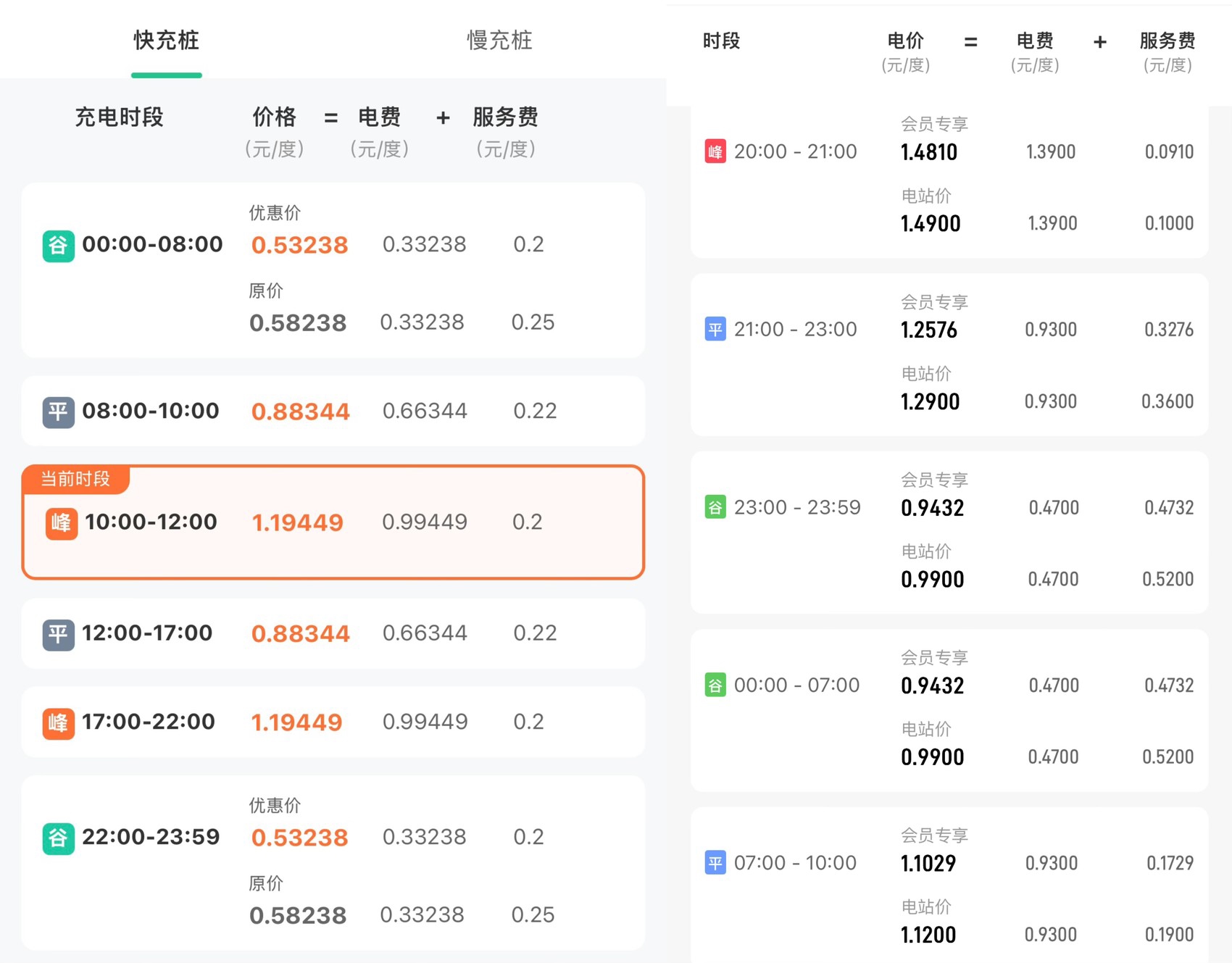 不同充电品牌的峰谷电时间不同。
