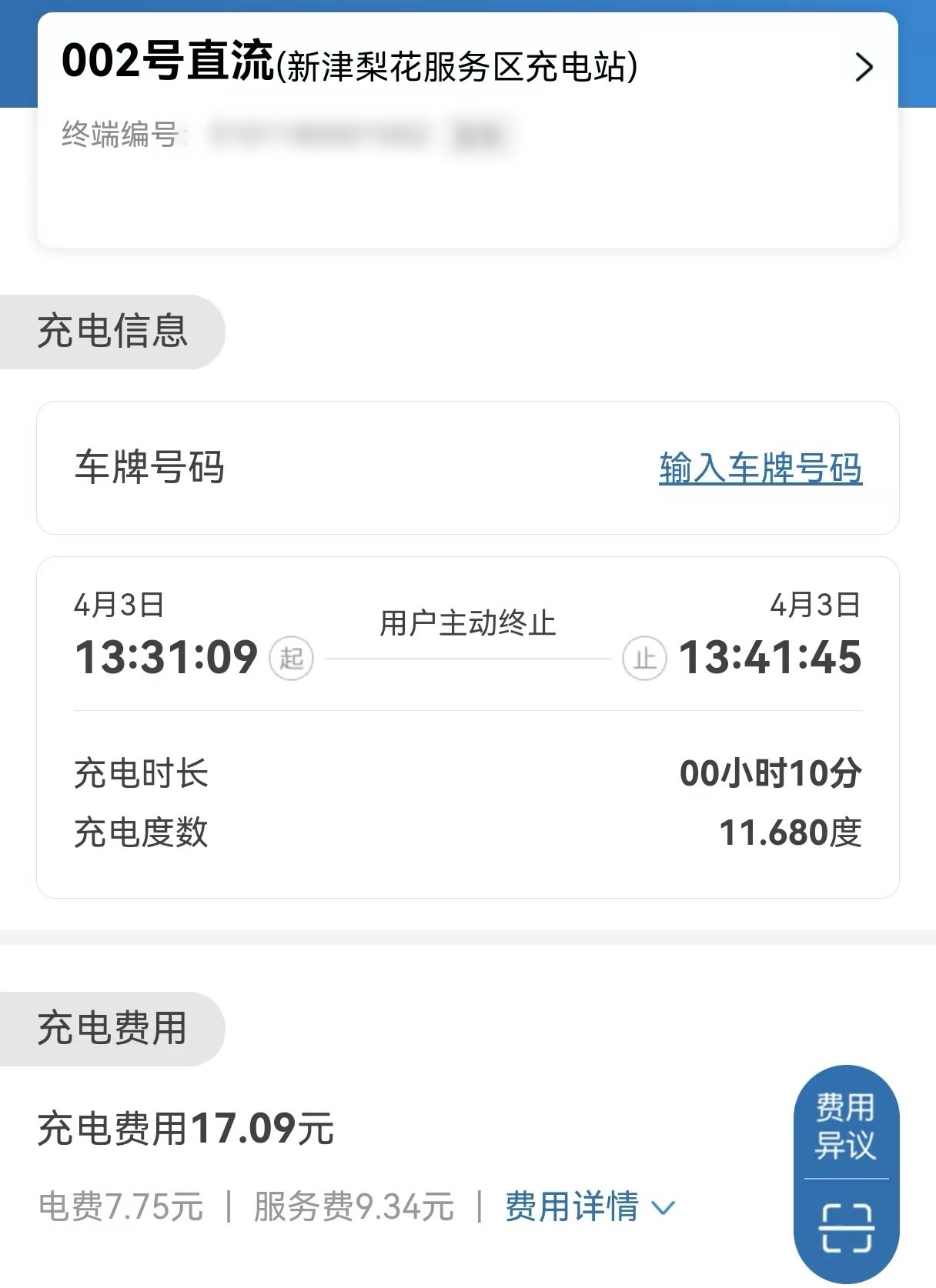 在高速公路服务区充电后,服务费比电费更高。