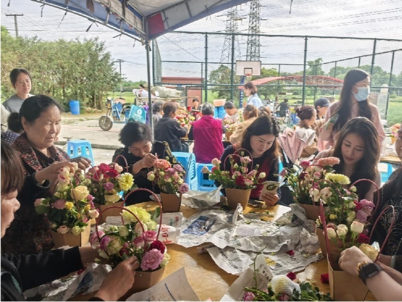 花海之外,浓浓的乡味和民俗更是点燃了游客的热情。乡村坝坝宴开席,大家围坐一堂,品尝地道农家菜,感受久违的烟火气。席间,川剧变脸等非遗表演轮番登场,精湛的技艺赢得阵阵喝彩。插花、漆扇制作等互动体验项目前也排起了长队,游客在品茗赏花之余,亲手制作一份属于自己的田园记忆。