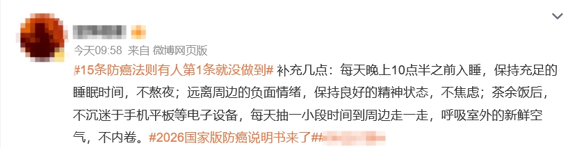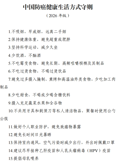 近日,国家卫生健康委正式发布了《中国防癌健康生活方式守则》,这是一本人人能看懂、照着做就能降低患癌风险的“官方防癌说明书”。