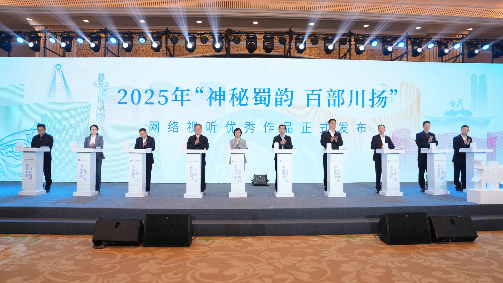 本次活动由中共四川省委宣传部、中共四川省委网信办、四川省广播电视局、四川省财政厅、四川省教育厅主办。发布仪式在开场表演《文明回响》中拉开帷幕,围绕“锦绣·溯源之根”“奔涌·时代之镜”“激荡·匠心之光”三大篇章徐徐展开。整场活动融合了非遗、民族风情与前沿科技,通过作品展映、艺术展演、创作分享、颁奖表彰等形式,集中呈现了2025年度四川网络视听精品创作的丰硕成果。《寻画蜀道》《逐水》《锦绣天府 安逸四川》主创团队代表分享了创作心得,讲述了用镜头记录巴蜀文化、用光影讲述四川故事的幕后点滴。