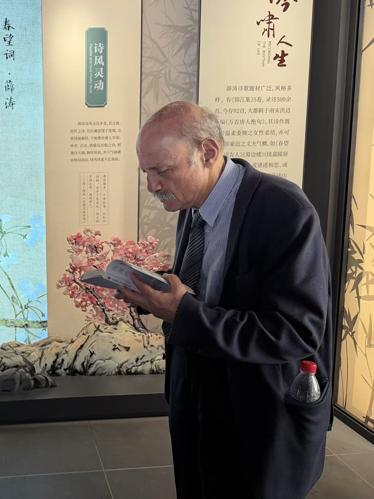 于是,参观结束后,四川大学古典学系在杜诗英译本中,挑选了公认的权威版本《许渊冲译杜甫诗选》,并于4月12日下午参观望江楼公园薛涛纪念馆时赠送给布拉塞利斯,给了他一个意外之喜。“他当时很惊喜,因为没有提前跟他说。”张伊记得,布拉塞利斯接过书,当场就翻阅起来。