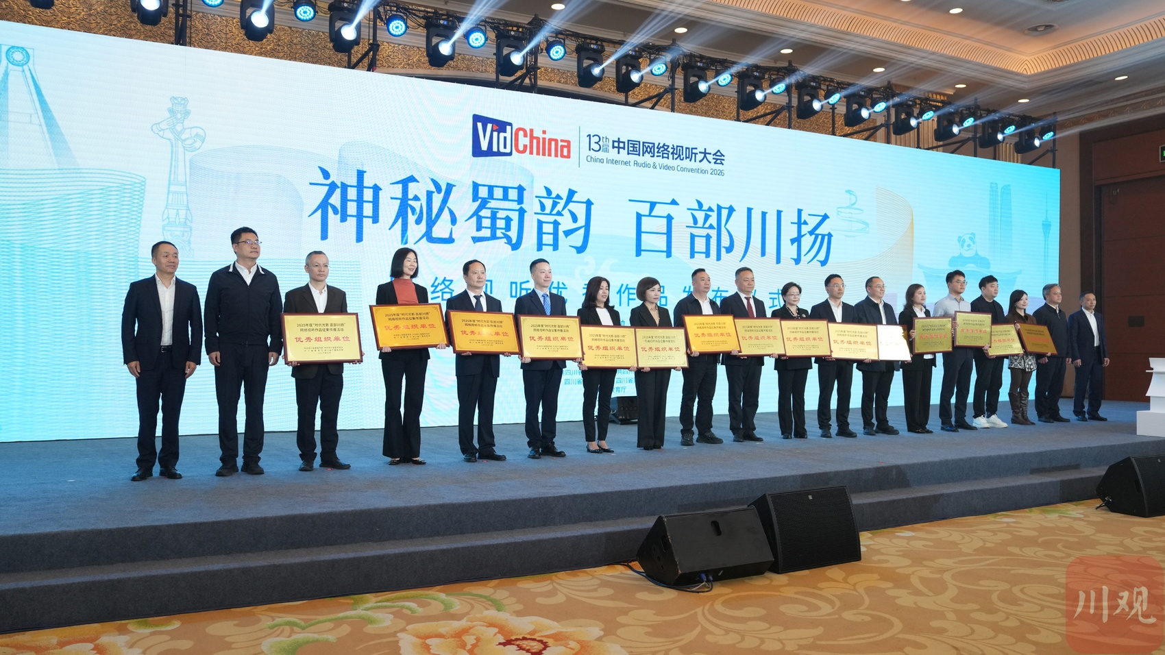4月14日至16日,第十三届中国网络视听大会在成都举办。14日上午,作为大会首场核心活动,2025年度“神秘蜀韵 百部川扬”网络视听优秀作品发布仪式举行。现场揭晓50部年度优秀作品及15家优秀组织单位,微短剧《家里家外》《东坡一梦》,网络电影《逐水》,网络纪录片《金沙探秘》等十部作品获得一等奖。