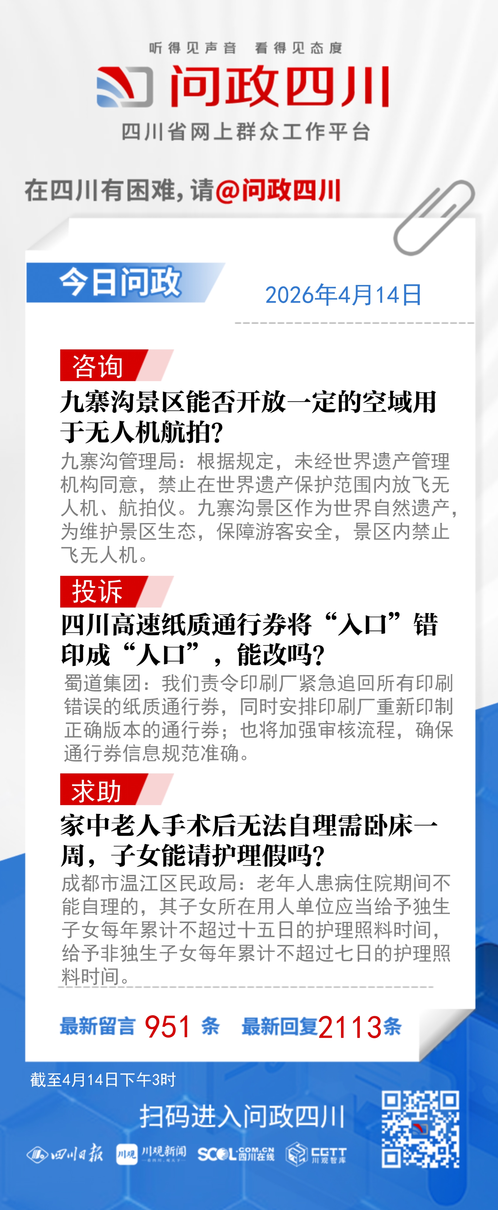 问政四川网友提问:2026年四川春假期间,不少家长带着孩子前往九寨沟景区旅游观光。大家在欣赏九寨沟绝美自然风光的同时,也希望能用无人机航拍记录下雪山、湖泊、彩林交织的美丽景致。特此咨询:九寨沟景区是否划分了明确的禁飞区、限飞区与可飞区,能否开放一定的空域用于无人机航拍?
