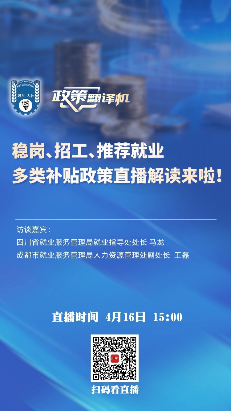 为让大家更准确透彻理解政策、享受政策红利,川观新闻《政策翻译机》栏目联合四川省人力资源和社会保障厅,邀请到四川省就业服务管理局、成都市就业服务管理局相关负责人,通过直播方式,分期、全面解读政策细节。本期重点解读的政策包括:稳岗留工补贴激励、支持行业内部稳岗就业、实施新竣工投产企业招工激励、鼓励人力资源服务机构推荐就业、支持平台企业稳定就业岗位。