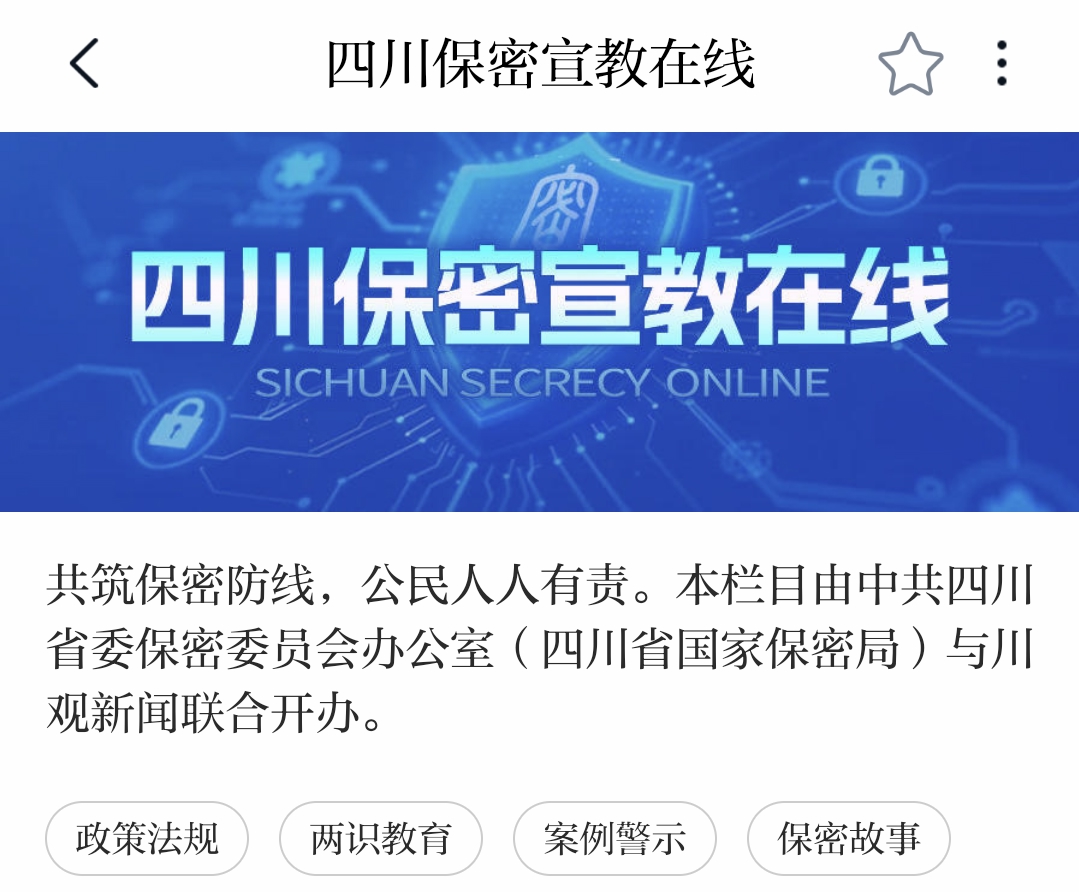 保密工作是维护国家安全和利益的基础性、全局性、长远性工作。当前,随着信息化、网络化深入发展,保密工作面临的形势日益严峻复杂,强化全民保密意识、普及保密法律法规、提升全民保密防范技能,已成为新时代保密工作的重要任务。为深入贯彻落实总体国家安全观,进一步提升全社会保密防范能力,省委保密办(省国家保密局)携手川观新闻,依托主流媒体传播优势与保密部门专业优势,搭建“四川保密宣教在线”权威宣教平台,旨在推动保密宣传教育常态化、长效化开展,以全力营造“共筑保密防线,公民人人有责”的社会氛围。