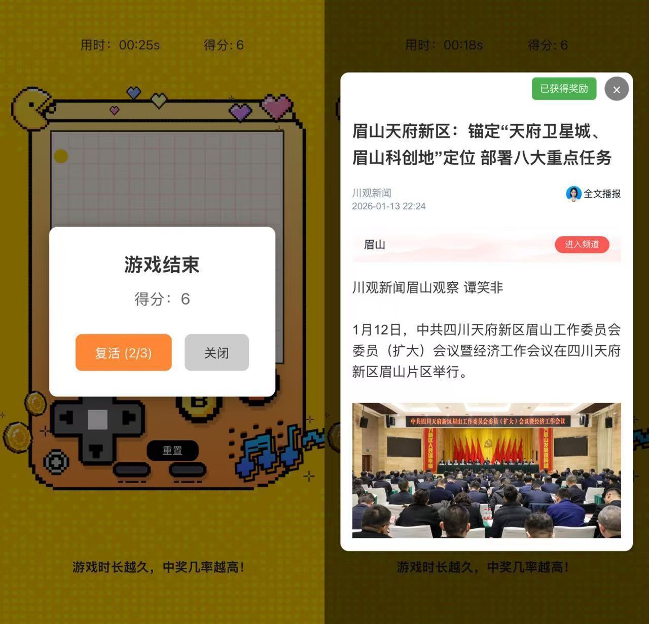 每轮小游戏都有3次复活机会