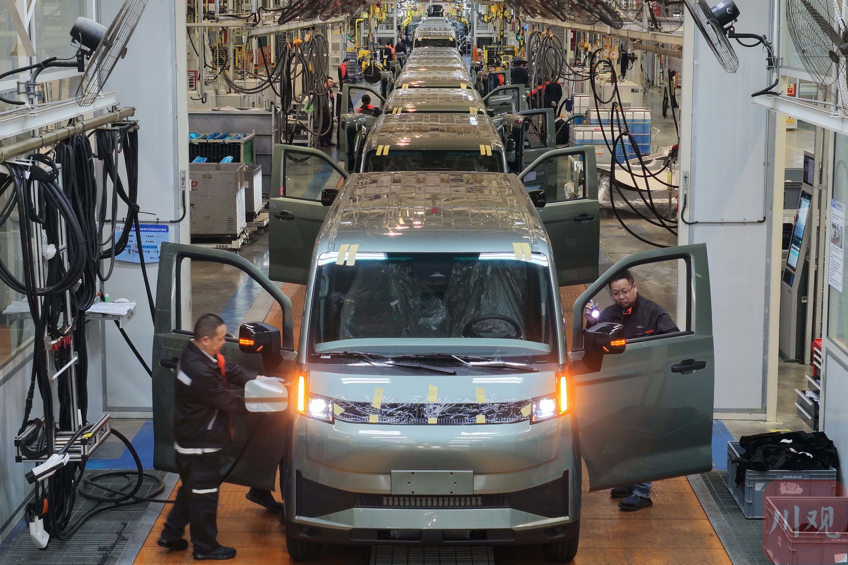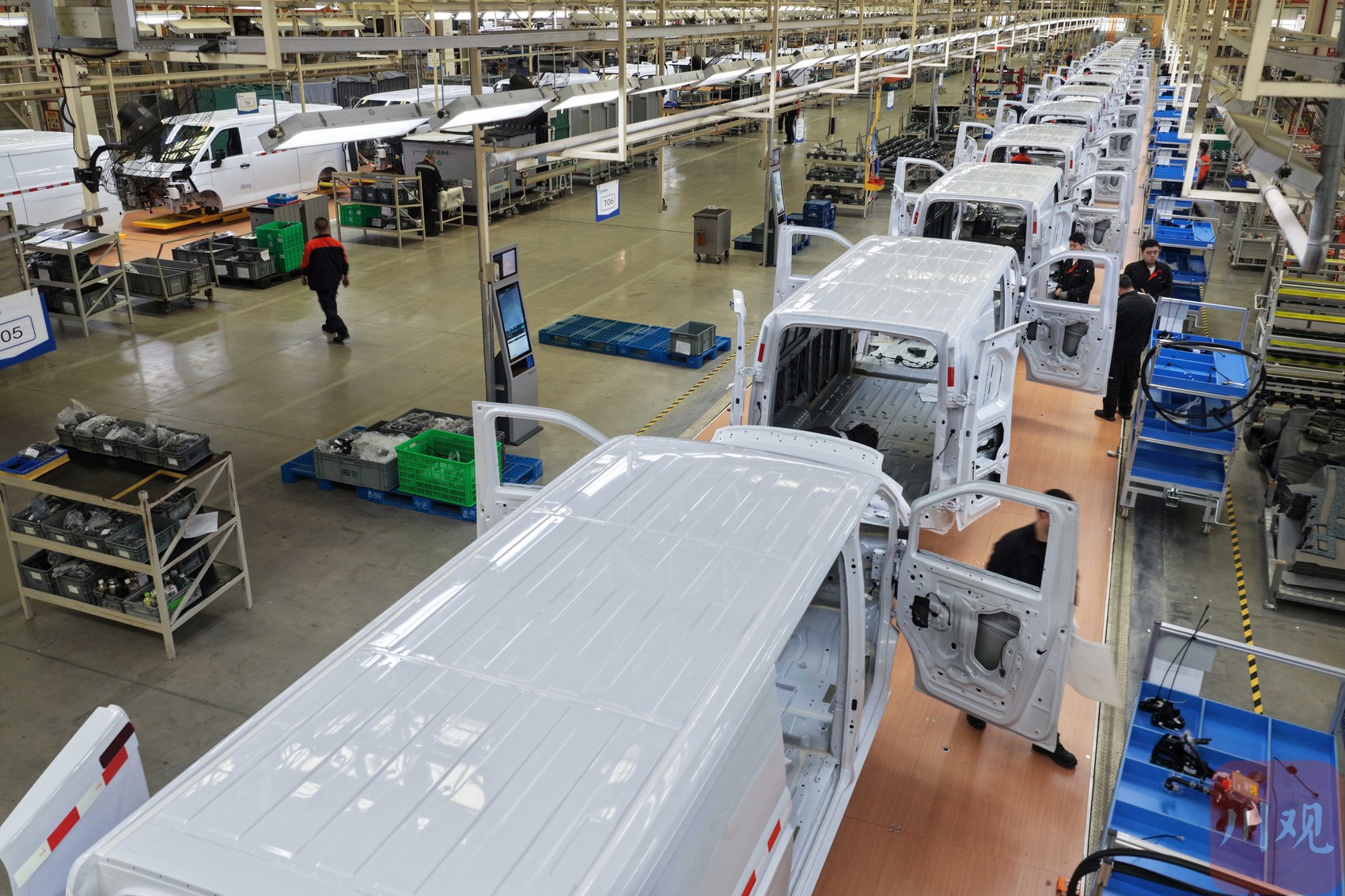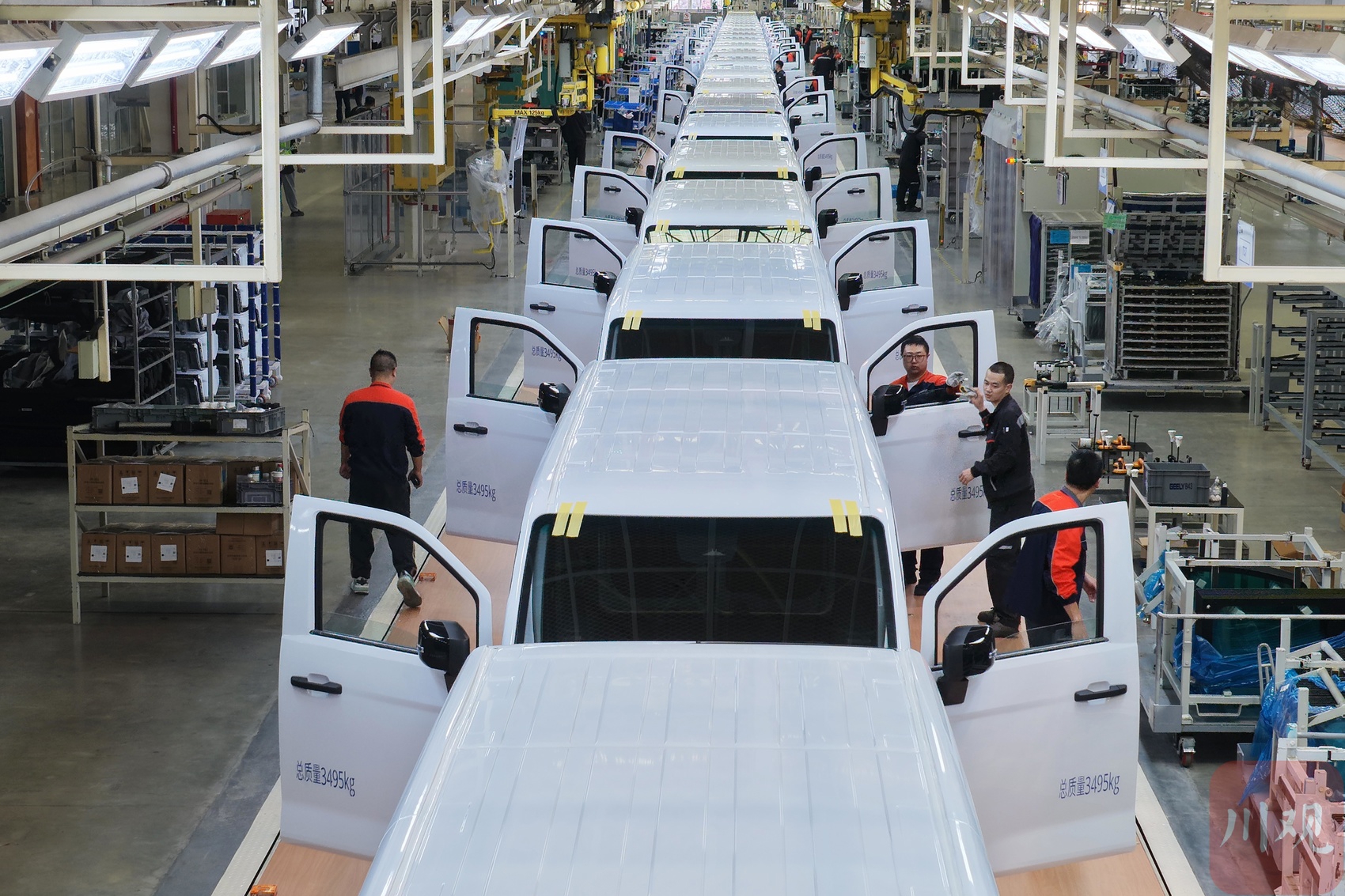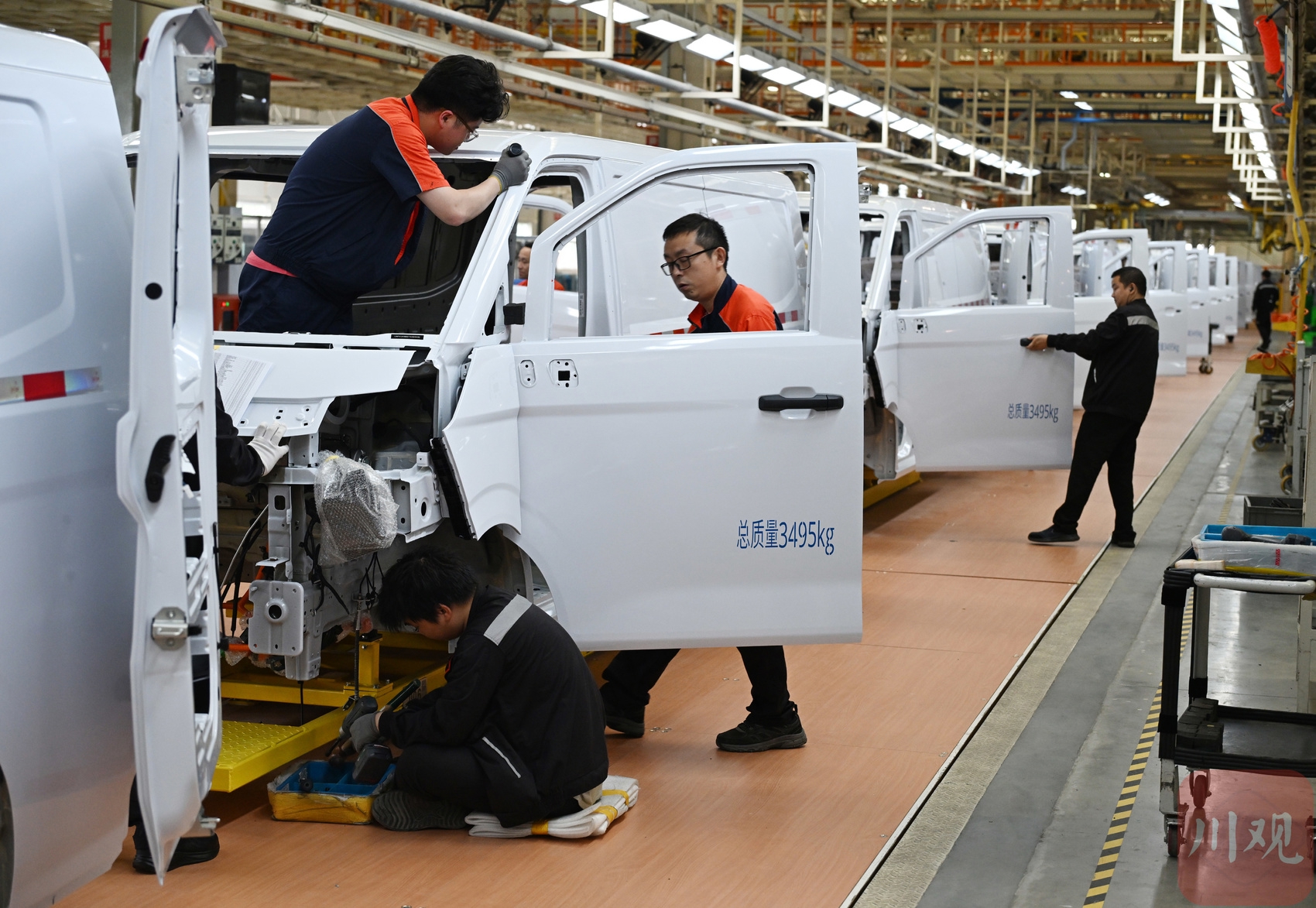 2026年4月15日,位于四川省南充市嘉陵区的吉利四川商用车有限公司总装车间,工作人员忙着组装新能源商用车。