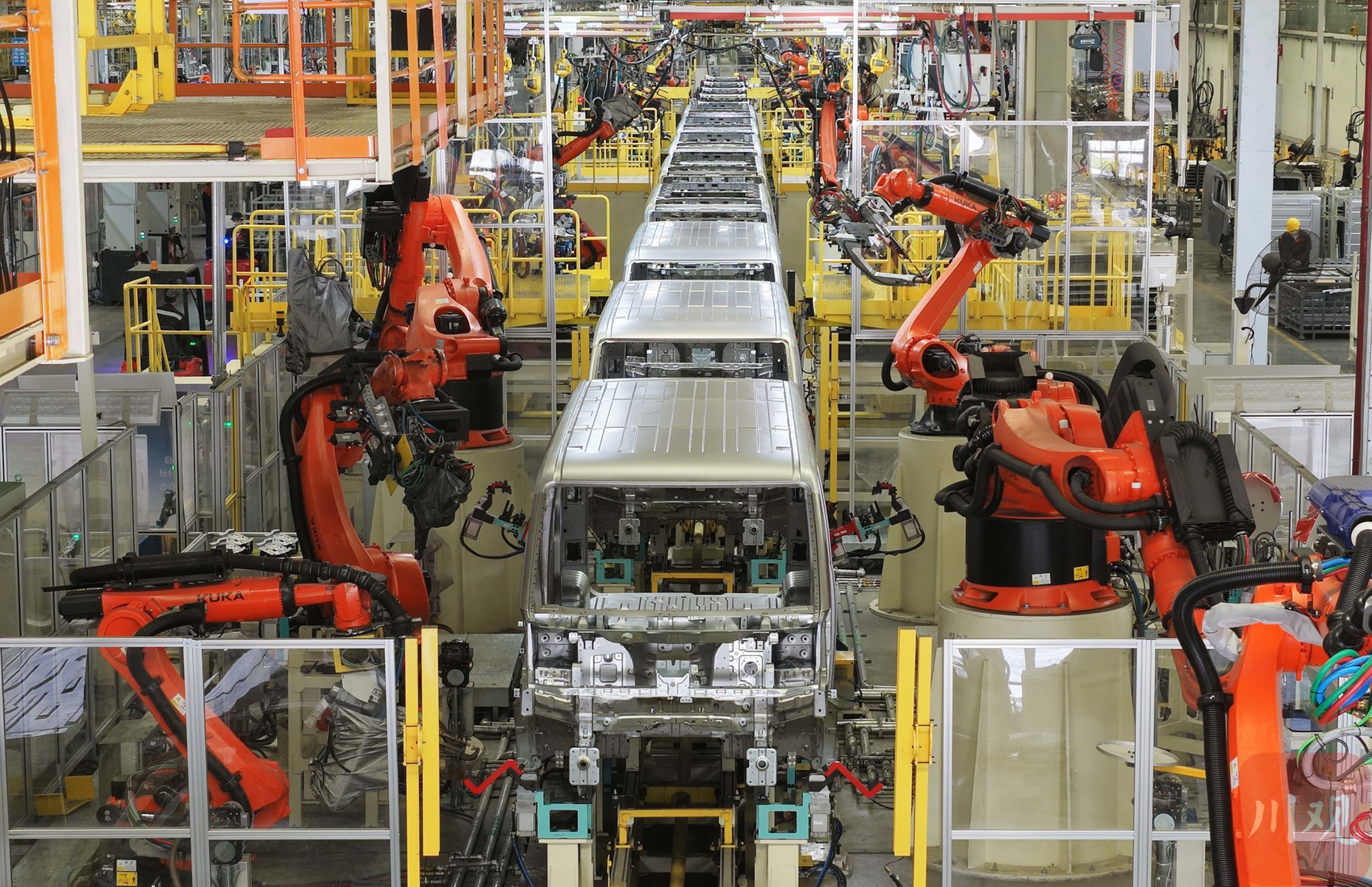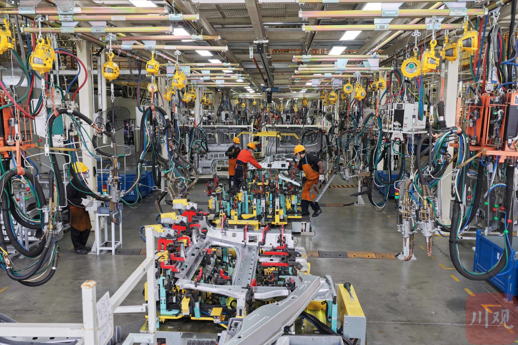 2026年4月15日,位于四川省南充市嘉陵区的吉利四川商用车有限公司焊装车间,工作人员组装新能源商用车。