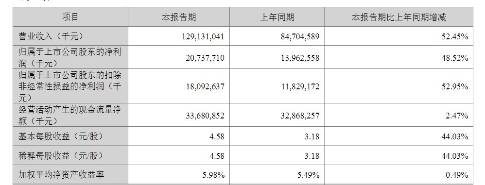 宁德时代一季度主要会计数据