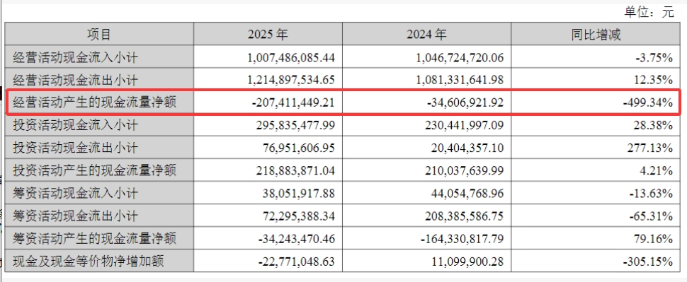 金融投资报记者注意到,成都路桥交出的这份“减亏”成绩单背后,暗藏着一组耐人寻味的数据:营收增长、亏损收窄,但经营现金流却同比暴跌499.34%。在此背景下,其似乎正将目光投向矿业板块,试图开辟第二增长曲线。