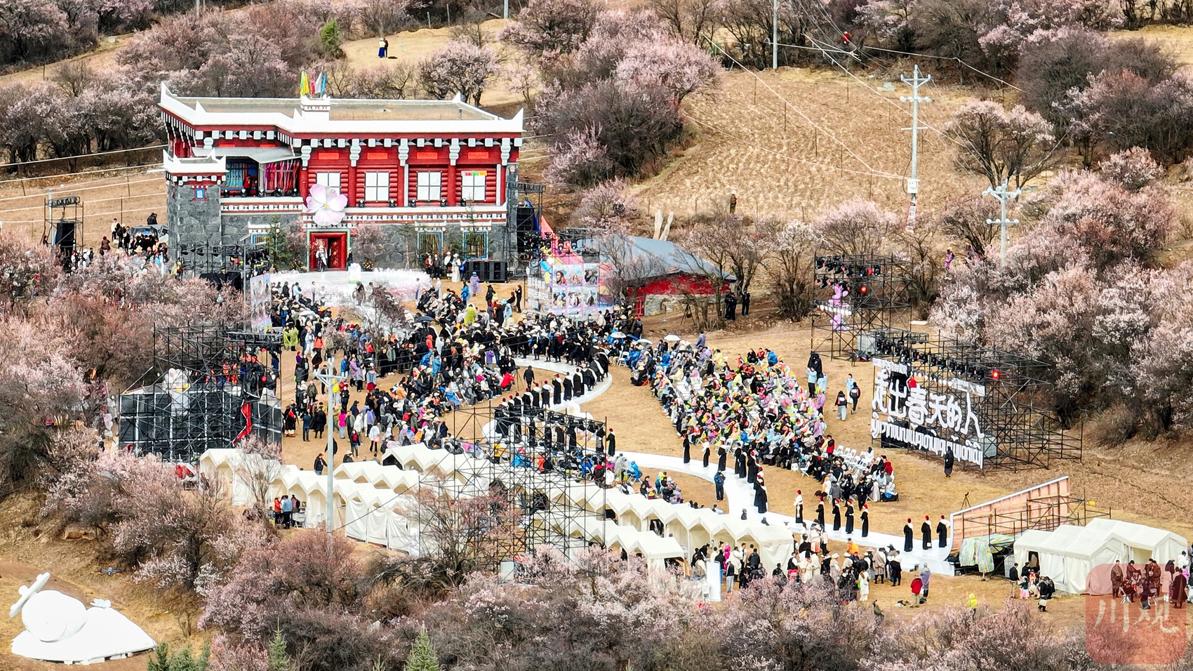丹巴县“梨花下的音乐会”还未唱罢,2026得荣桃花季系列活动已经登场。得荣县白松镇万亩野生桃林如霞似锦,“桃源村BA”篮球赛激战正酣,原生态锅庄大赛轮番登场。另一边的网络达人选拔赛上,来自浙江省桐庐县的网络达人既赏了桃花又带了货。