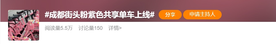近日,不少网友发现,成都街头惊现粉色、紫色共享单车。网友纷纷表示:在青黄蓝大军之外还能选择粉嫩出行了。此次投放的粉色、紫色共享单车不仅颜色扯眼球,关键还配置了水杯支架、导航支架、舒适坐垫等,配置直接给到一个“夯”!