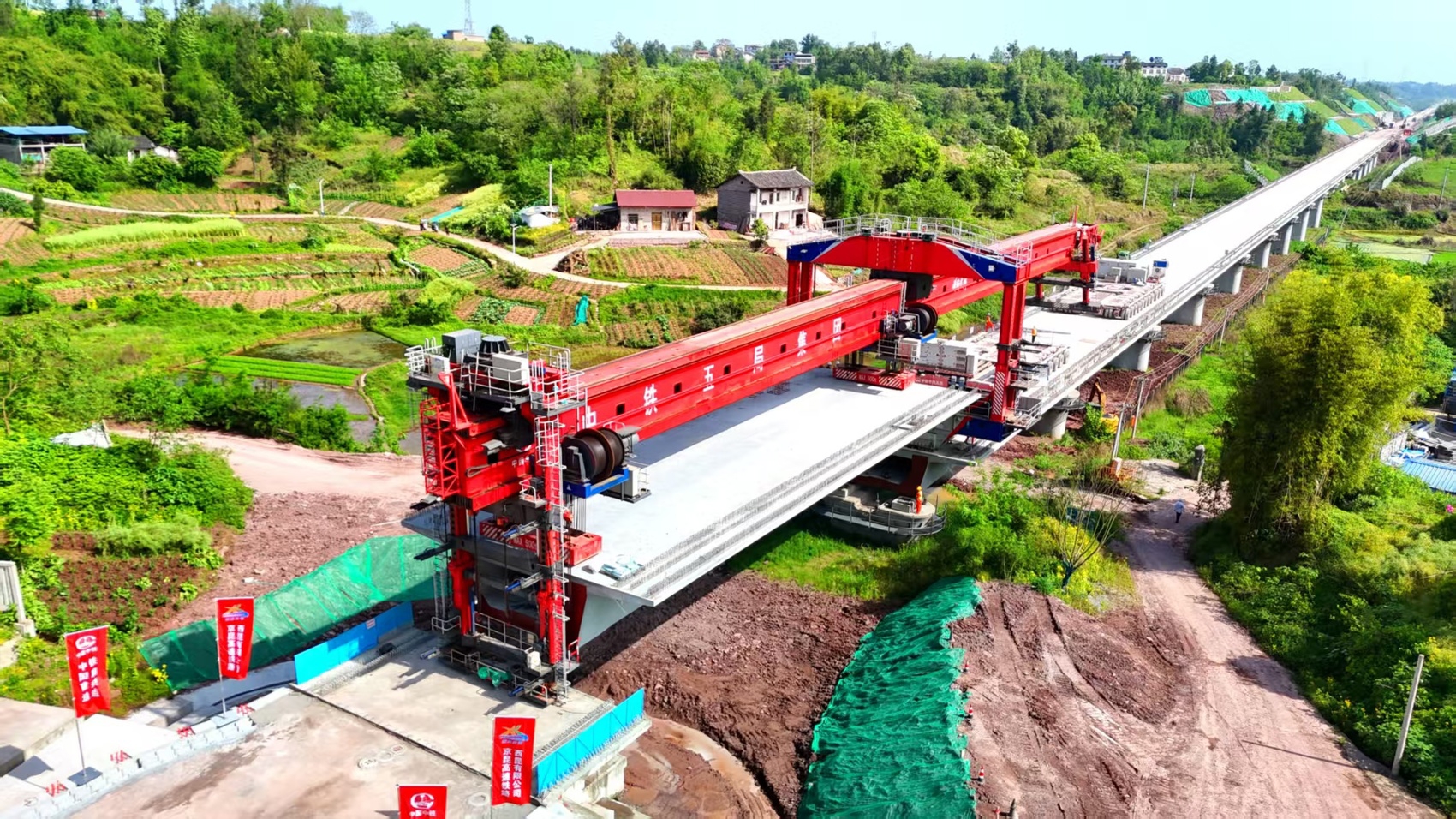 西渝高铁是我国“八纵八横”高铁网北京至昆明的京昆通道和包头、银川至海口的包(银)海通道的重要组成部分,路网地位十分重要,西渝高铁康渝段自安康西站起,经陕西省安康市,重庆市城口县,四川省达州市、广安市,重庆市合川区、北碚区,引入重庆枢纽重庆西站。其中,达州至广安段全长约115公里,需预制和架设1520孔箱梁,达州至广安段的架梁完成,为下一步无砟轨道施工和铺轨创造了条件。