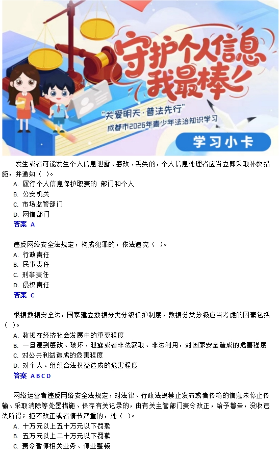 “关爱明天·普法先行”成都市2026年青少年法治知识学习火热进行中。