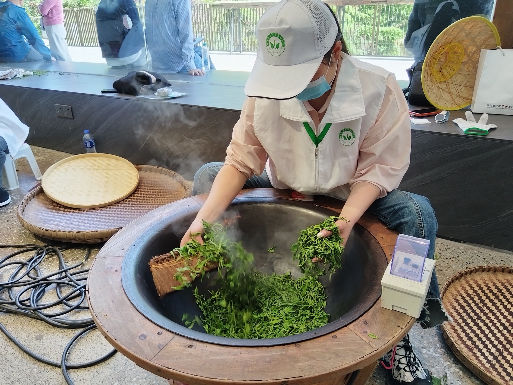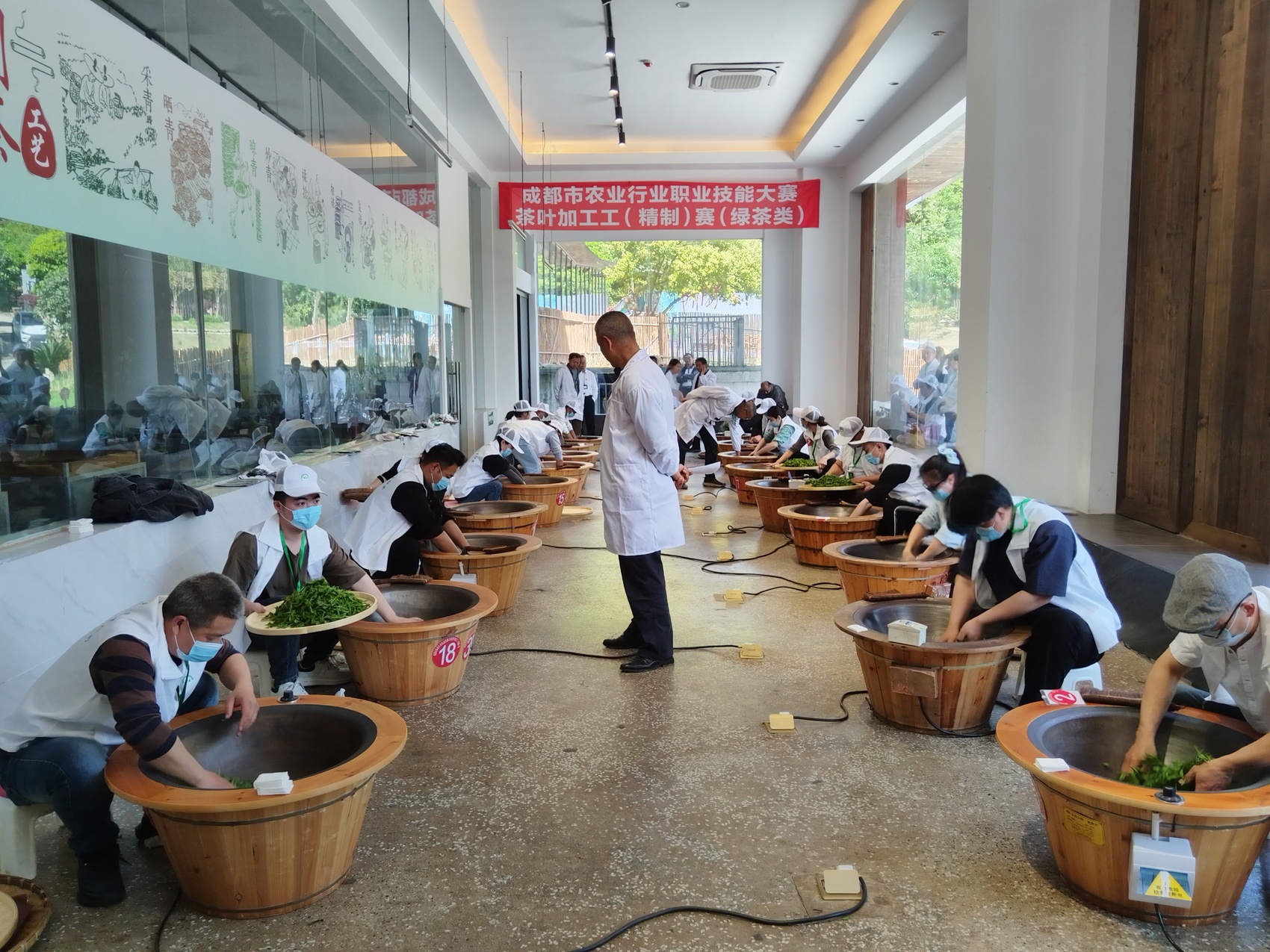 本次大赛设置理论知识竞赛与实际操作竞赛两大板块,全面检验选手专业素养与实操能力。选手经线上报名、资格审核、赛前抽签确定工位后,在90分钟内规范完成杀青、揉捻、干燥等绿茶制作全流程,以精准手法、纯熟技艺比拼制茶品质。火候控分寸,鲜叶变香茗。选手们以专业功底诠释“精工制茶”,充分展现成都茶产业人才扎实的技术水平与精益求精的匠人精神。