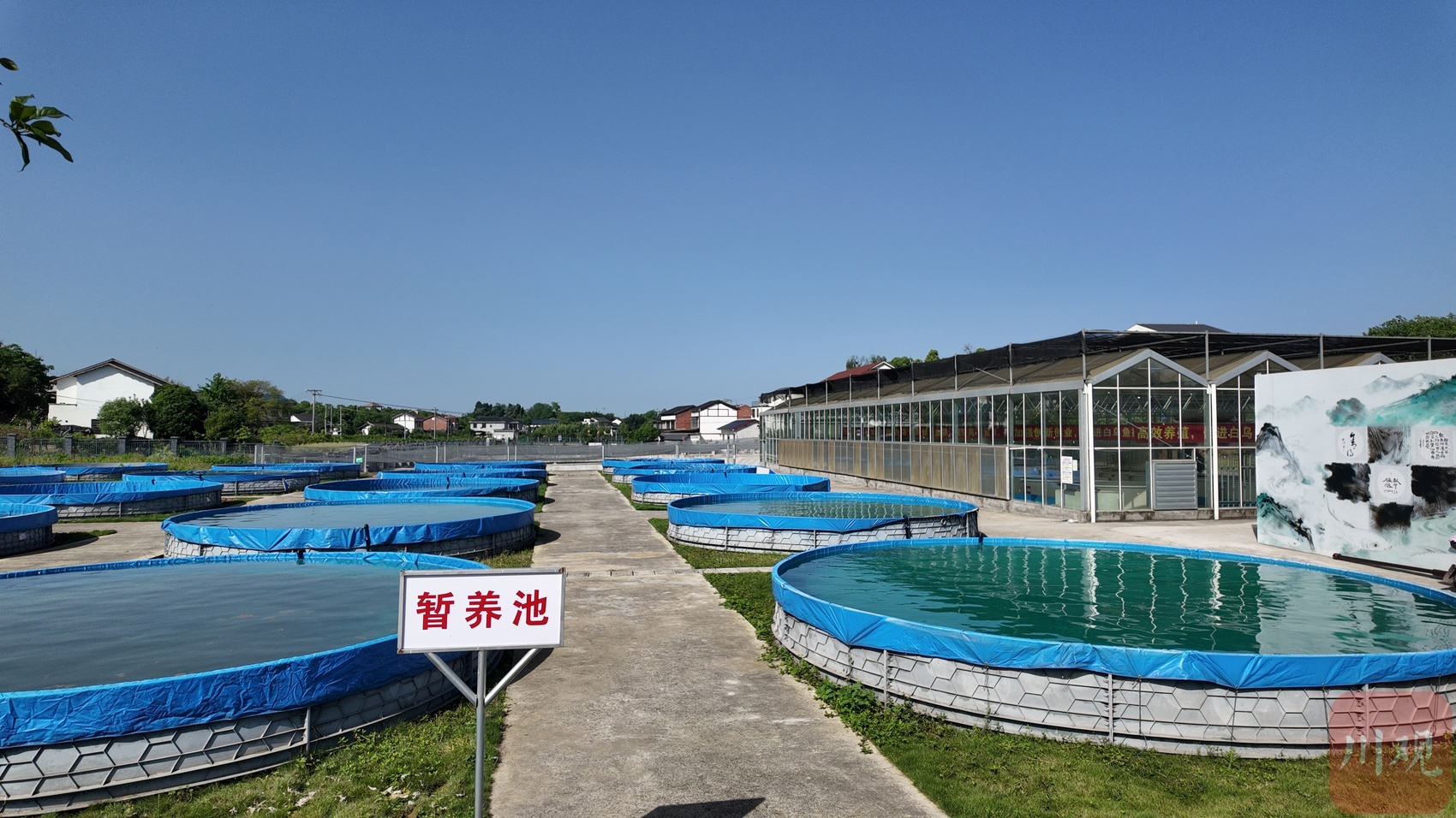 白乌鱼育种场外的白乌鱼养殖池。
