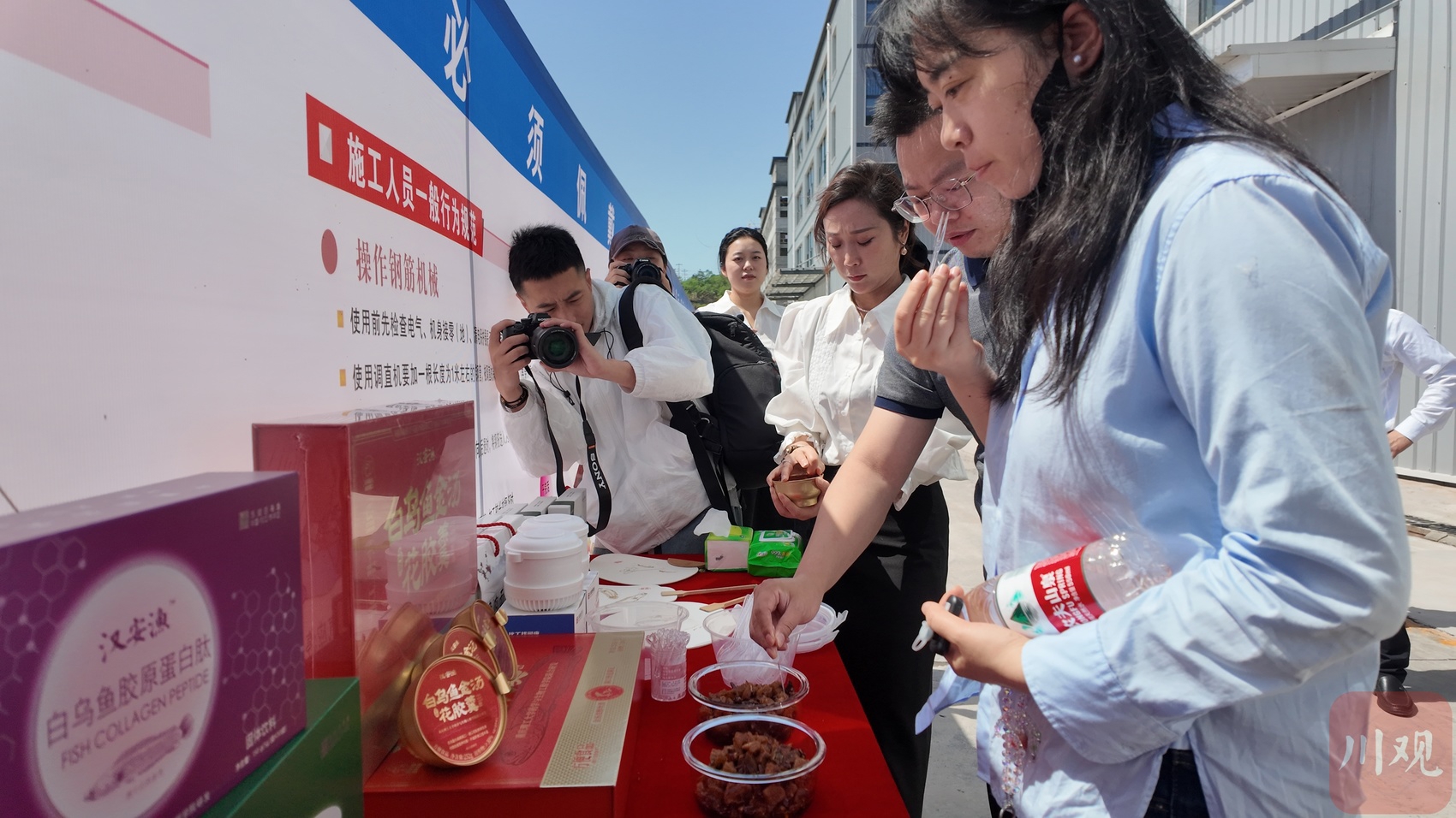 参观人员品鉴白乌鱼系列精深加工产品。