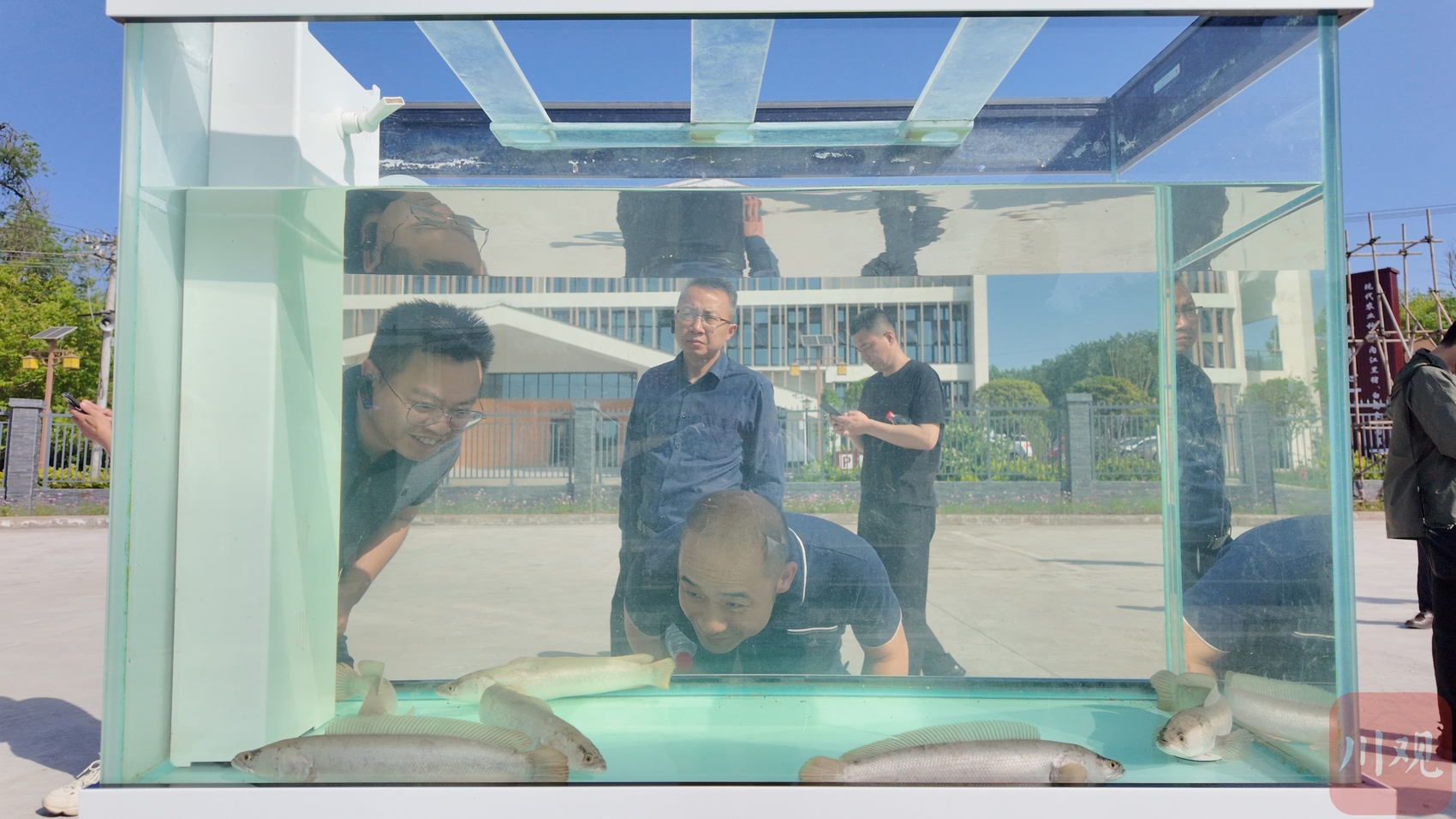 四川省白乌鱼良种场入口旁操场上,现场摆放了一个透明水箱。水箱里5尾白乌鱼自由游弋,瞬间吸引了参观人员目光。杨兴亮指着水箱里的鱼说,这是四川省首个自主选育的水产新品种“玉龙1号”,也是当前白乌鱼养殖的主流品种。